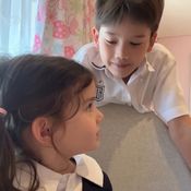 น้องแม็กซ์เวลล์ ลูกชายของ ซาร่า คาซิงกินี ภาพน่ารักเล่นตอบคำถามกับน้องสาว พี่ชายอบอุ่นและแสนดีมาก