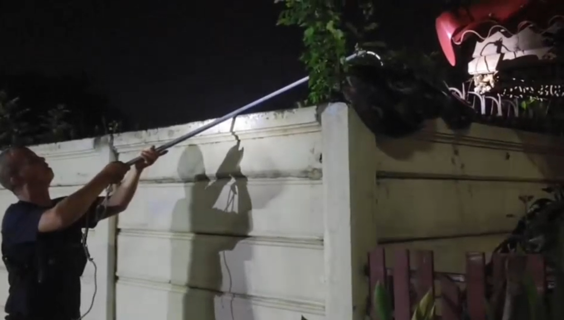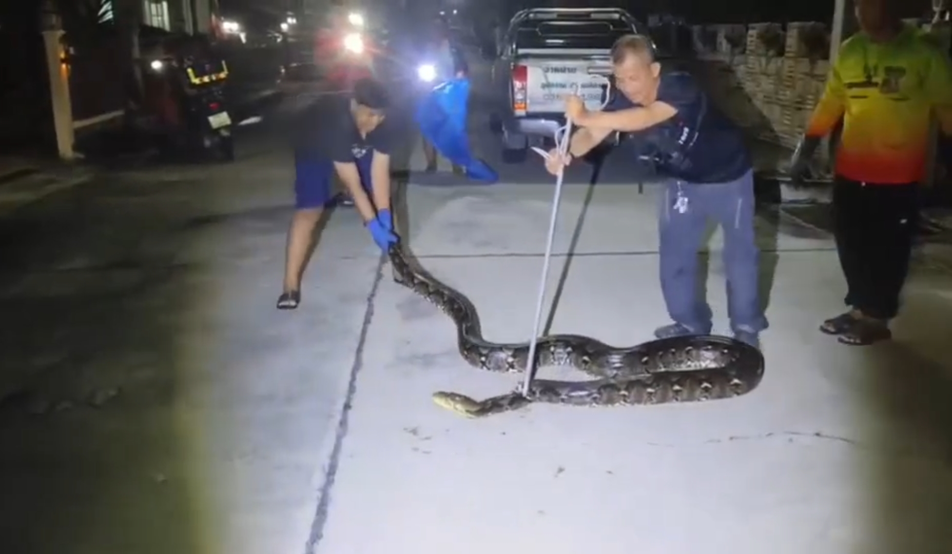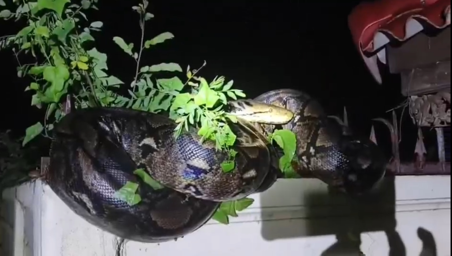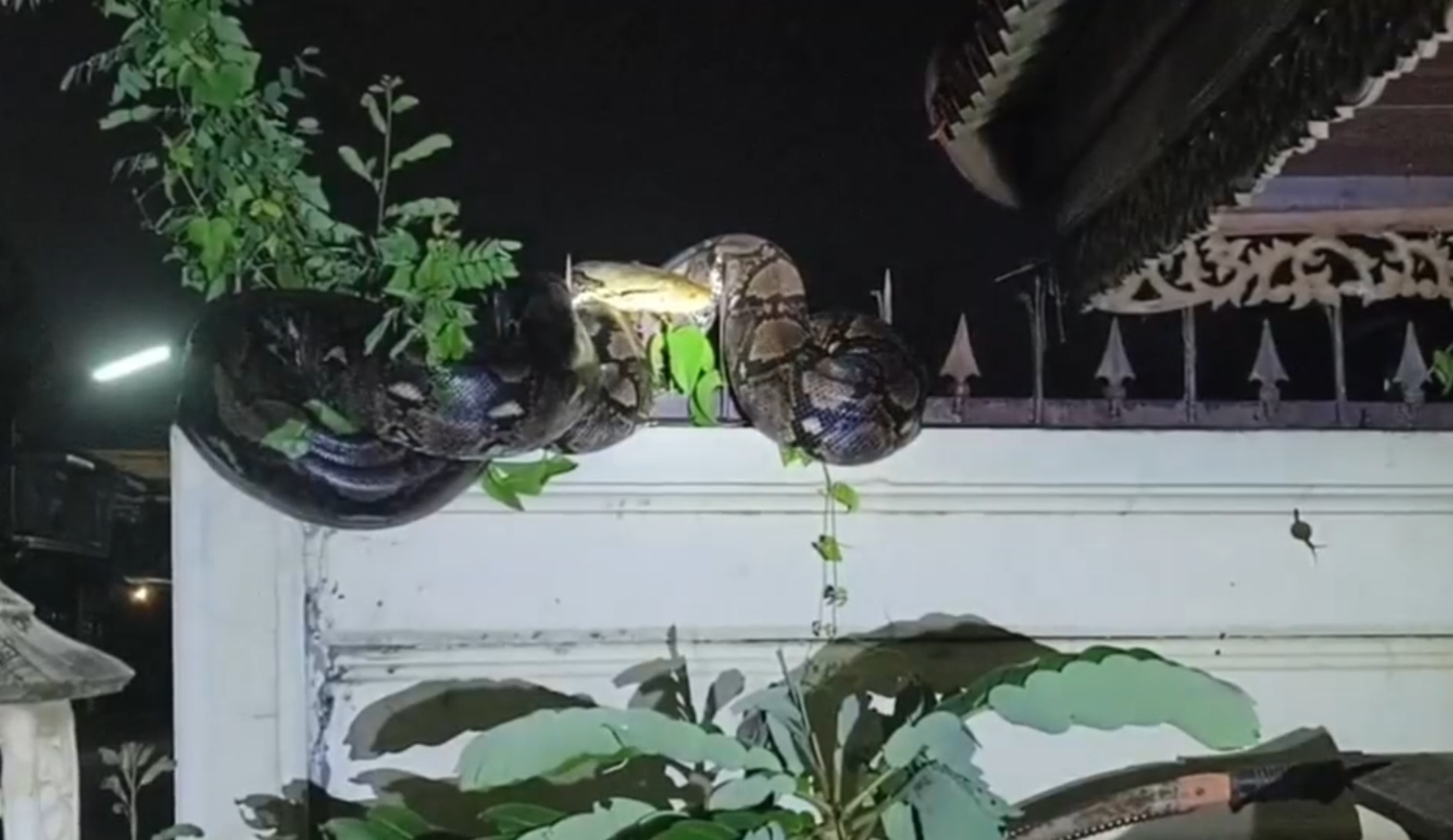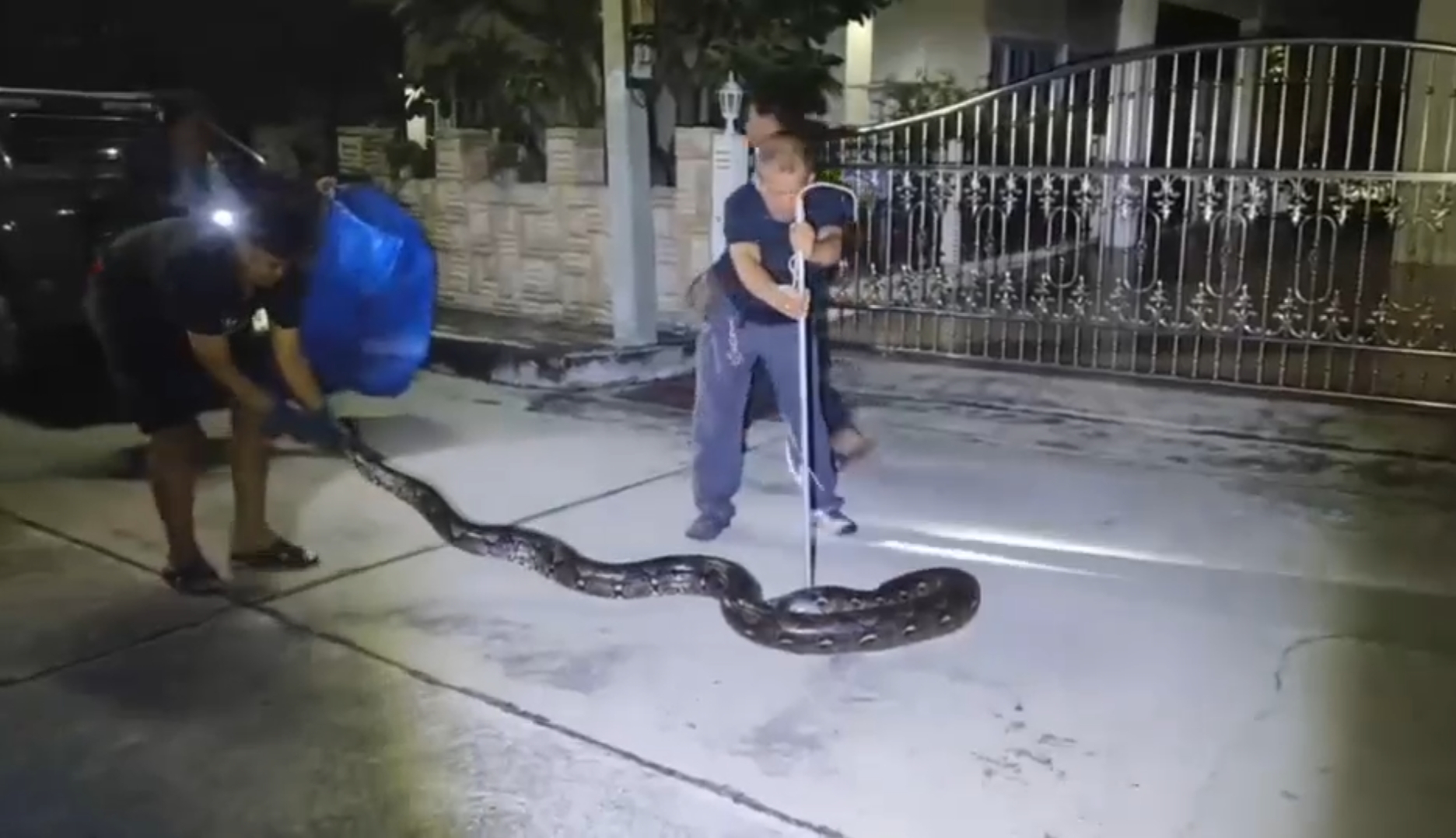 เจ้าของบ้านแทบช็อก! "งูเหลือมยักษ์" อยู่บนกำแพง กู้ภัย 3 นาย ยังเอาแทบไม่อยู่ระทึกกลางหมู่บ้านหรู! เหลือมยักษ์ยาว 3 เมตร นอนขดบนกำแพงบ้าน เจ้าของบ้านผงะ กู้ภัย 3 นายช่วยกันจับแทบไม่ไหว