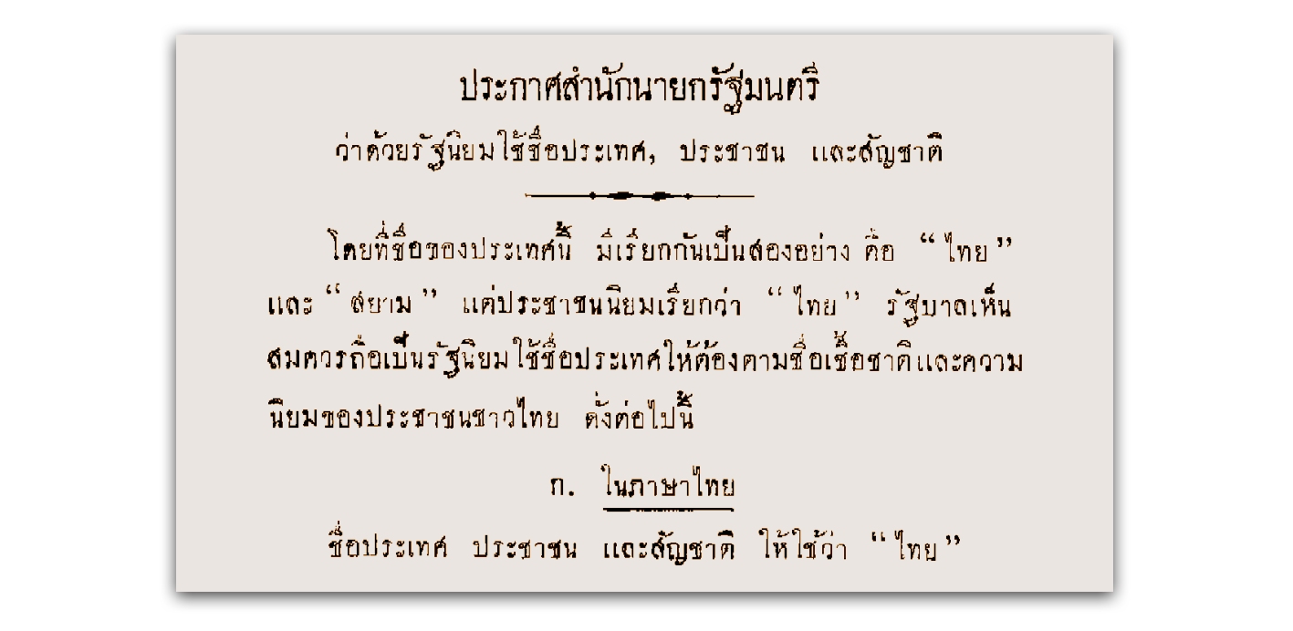 "ไทย" แปลว่าอะไร? ทำไมเมื่อ 86 ปีก่อน เราต้องเปลี่ยนชื่อจาก "สยาม" มาเป็นประเทศไทย"สยาม" สู่ "ประเทศไทย" ย้อนบันทึกทางราชการ เหตุผล และการอภิปรายในรัฐสภาฯ เมื่อ 86 ปีที่แล้ว