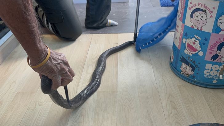 ต่อมาเจ้าหน้าที่กู้ภัยได้จับงูเห่าตัวดังกล่าว ซึ่งเป็นงูขนาดค่อนข้างใหญ่ ยาวเกือบ 1 เมตร ใส่ถุงซิปล็อกอย่างดี ก่อนจะส่งต่อให้เจ้าหน้าที่ดับเพลิง อบต.บางโฉลง เพื่อนำส่งสถานเสาวภา ซึ่งเป็นสถานที่ผลิตวัคซีนและเซรุ่มสำหรับรักษาพิษงู โดยหลังจากนั้นจะมีการปล่อยงูคืนสู่ธรรมชาติอย่างปลอดภัย