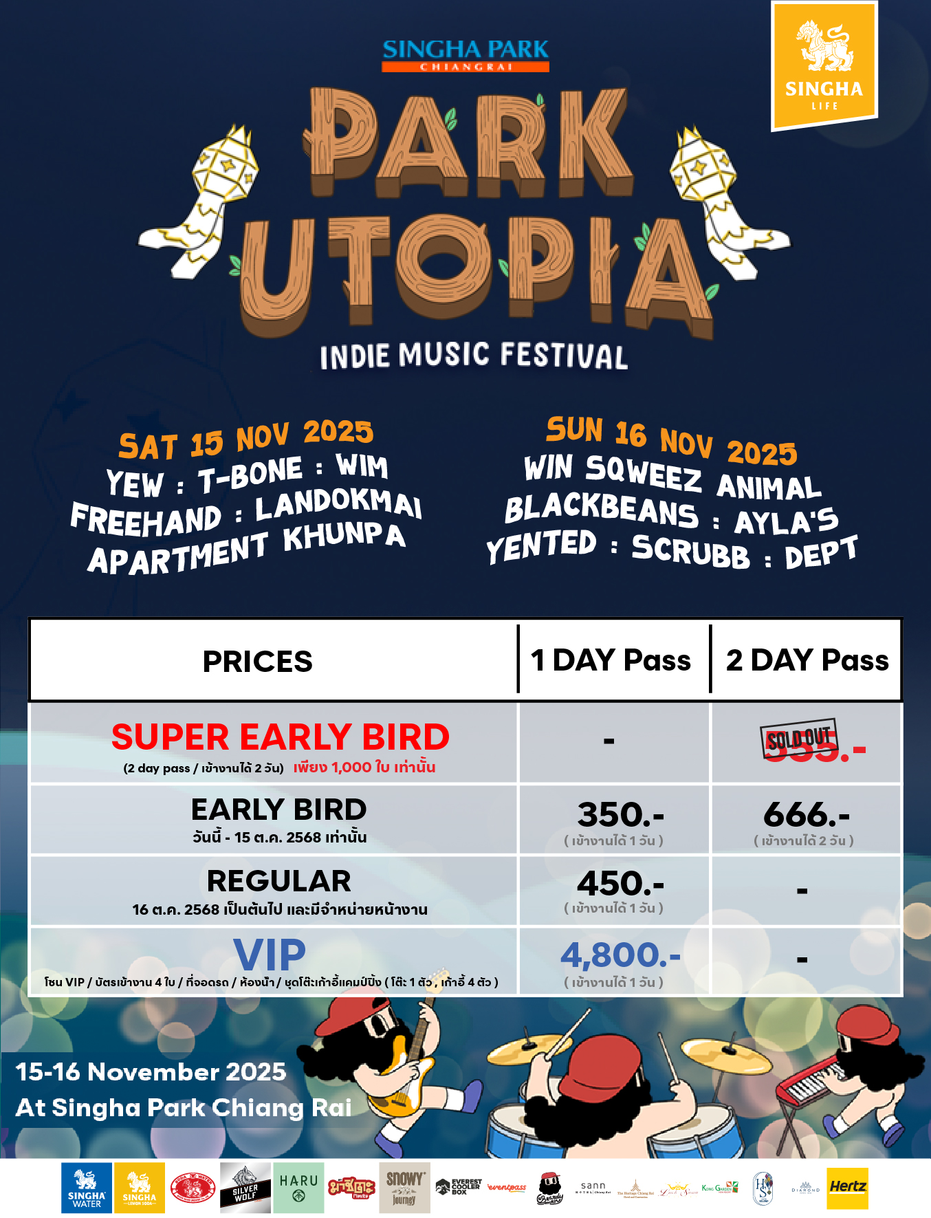 เติมความสุขรับลมหนาว “Park Utopia Indie Music Festival 2025” 15-16 พ.ย.นี้ ที่สิงห์ปาร์ค เชียงราย