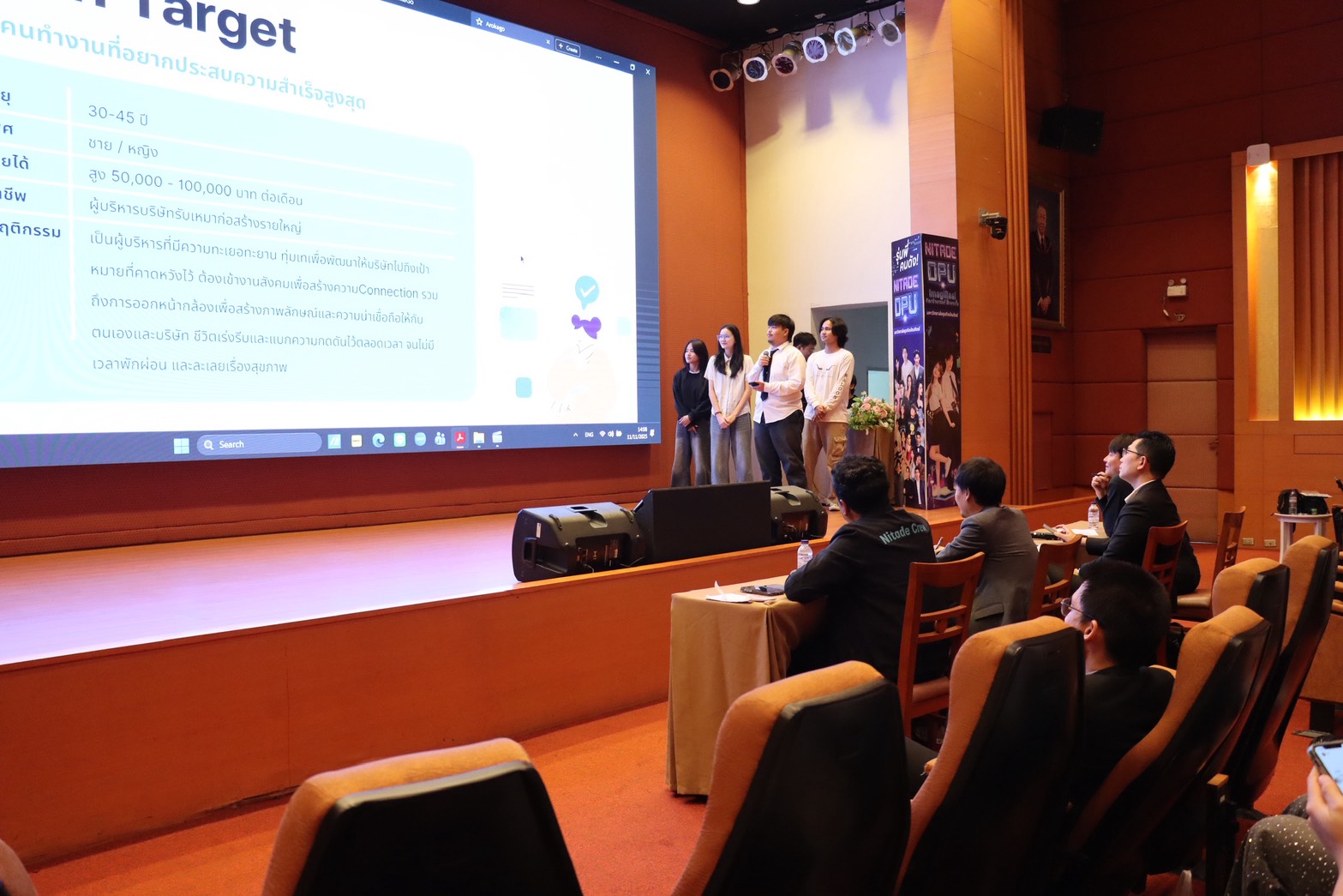 ภายในงานมีการนำเสนอผลงานต่อคณะกรรมการผู้ทรงคุณวุฒิจากทั้งมหาวิทยาลัยและภาคธุรกิจ ได้แก่ นายแพทย์สิริชัย ชัยสุธรรมพร กรรมการบริษัทและผู้ร่วมก่อตั้งแพลตฟอร์ม ArokaGO, ผู้ช่วยศาสตราจารย์ ศิวนารถ หงษ์ประยูร คณบดีคณะนิเทศศาสตร์ DPU, ผู้ช่วยศาสตราจารย์ ดร.กุลบุตร โกเมนกุล อาจารย์ประจำสาขาการเงิน การลงทุน และเทคโนโลยีการเงิน วิทยาลัยบริหารธุรกิจนวัตกรรมและการบัญชี CIBA-DPU และผู้ร่วมก่อตั้งแพลตฟอร์ม ArokaGO และกรรมการบริหารสมาคมการท่องเที่ยวเชิงการแพทย์และสุขภาพไทย, อาจารย์ชนพัฒน์ พนมวัน ณ อยุธยา อาจารย์ประจำหลักสูตรการสร้างสรรค์ดิจิทัลคอนเทนต์และสื่อ คณะนิเทศศาสตร์ DPU โดยมี อาจารย์วรพงษ์ ปลอดมูสิก รองคณบดีฝ่ายกิจการนักศึกษา และหัวหน้าหลักสูตรการสื่อสารการตลาดดิจิทัล คณะนิเทศศาสตร์ DPU ทำหน้าที่เป็นทั้งพิธีกรและกรรมการร่วม