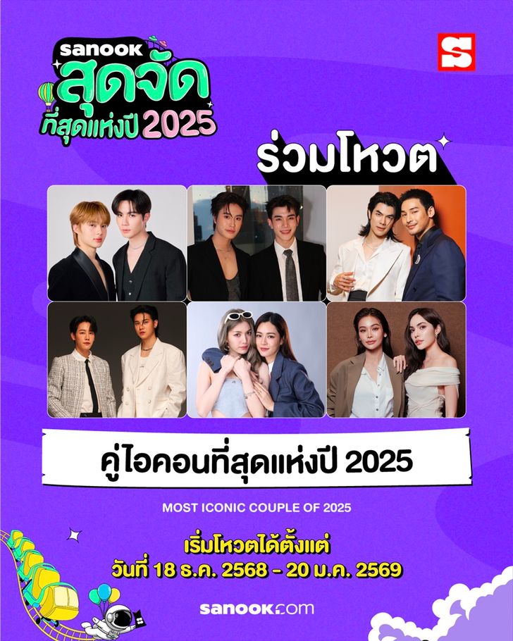 ร่วมโหวตให้กับ คู่ไอคอนที่สุดแห่งปี 2025 Most Iconic Couple of 2025 กับ "สนุกสุดจัด ที่สุดแห่งปี 2025" ได้ที่ Sanook.com จะมีคู่ไหนได้เข้าชิงบ้าง มาดูกัน!
