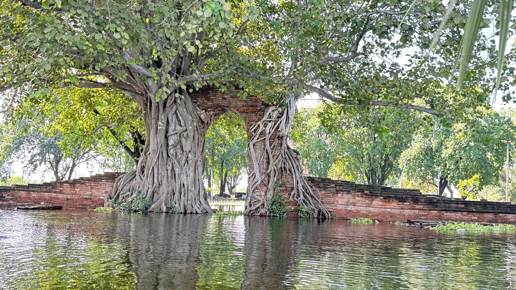 ผู้สื่อข่าวจังหวัดพระนครศรีอยุธยารายงาน ระดับน้ำที่เอ่อท่วมรอบโบราณสถาน วัดพระงาม ต.คลองสระบัว อ.พระนครศรีอยุธยา จ.พระนครศรีอยุธยา สูงเกือบ 1 เมตร ซึ่งรับน้ำมาจากแม่น้ำเจ้าพระยา ไหลเข้าสู่คลองขวด ทำให้จุดไฮไลต์สำคัญอย่าง “ประตูแห่งกาลเวลา” หรือซุ้มประตูรากโพธิ์โบราณ กลายเป็นภาพอันซีนกลางสายน้ำ โดยเฉพาะช่วงเย็นที่แสงอาทิตย์สะท้อนกับผิวน้ำ สร้างทัศนียภาพงดงามดั่งประตูมิติย้อนอดีต ส่วนในชุมชนพบว่าระดับน้ำเข่าท่วมบ้านเรือนชาวบ้าน ระดับน้ำท่วมสูงประมาณ 1-2 เมตร ทถนนทางเข้าชุมชนน้ำท่วมสูงต้องใช้เรือในการสัญจรเข้าออกบางจุดสามารถเดินลุยน้ำเข้าได้