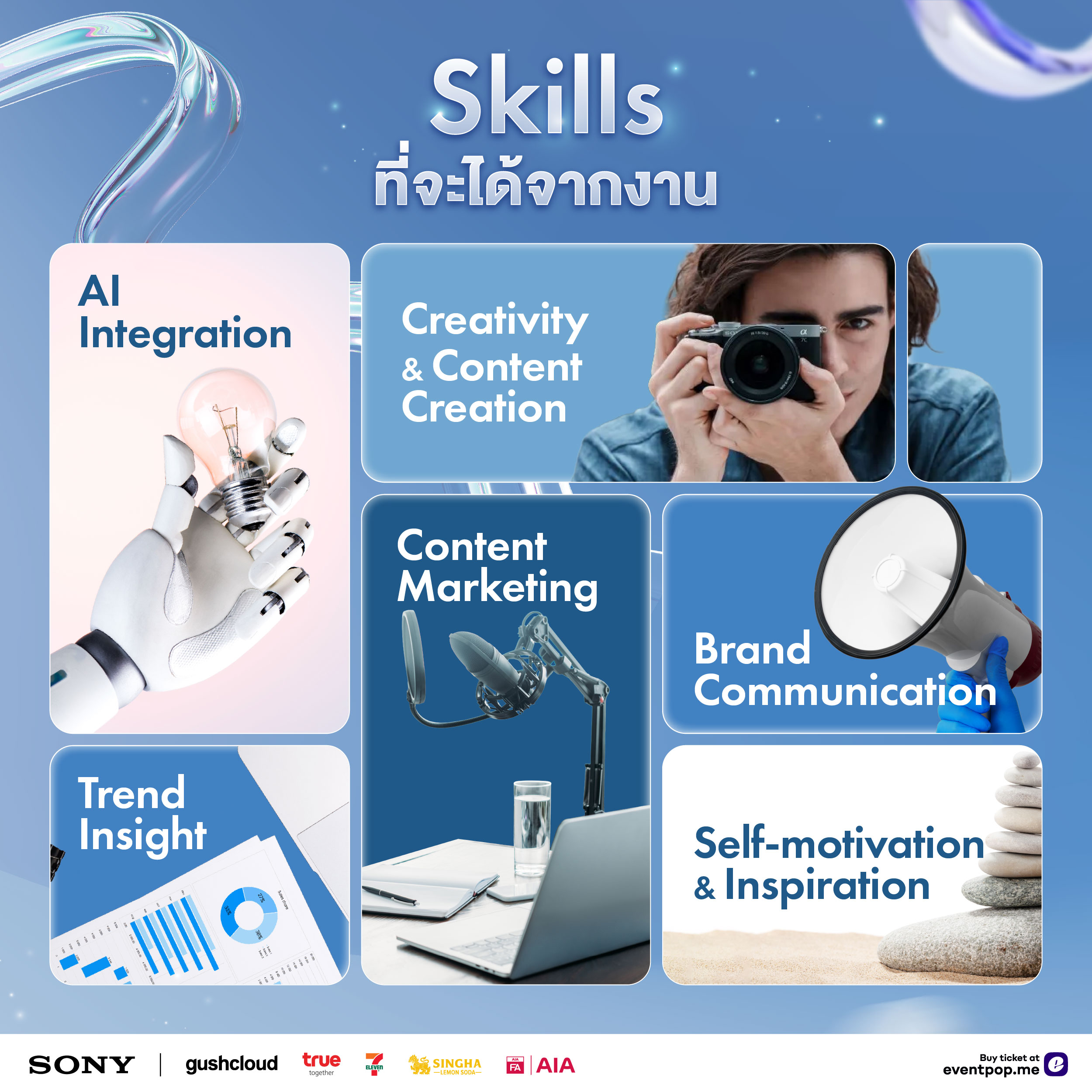 นอกจากจะมีไฮไลต์ที่น่าสนใจและความพิเศษที่ชาวครีเอเตอร์ แบรนด์และเอเจนซีไม่ควรพลาดแล้ว ภายในงานยังขนความรู้ยกมาทุกเทรนด์เพื่อสร้างแรงบันดาลใจให้กับทุกสายในวงการครีเอเตอร์เพื่อเสริมทักษะสำคัญที่ครีเอเตอร์ควรมีให้เต็มที่!