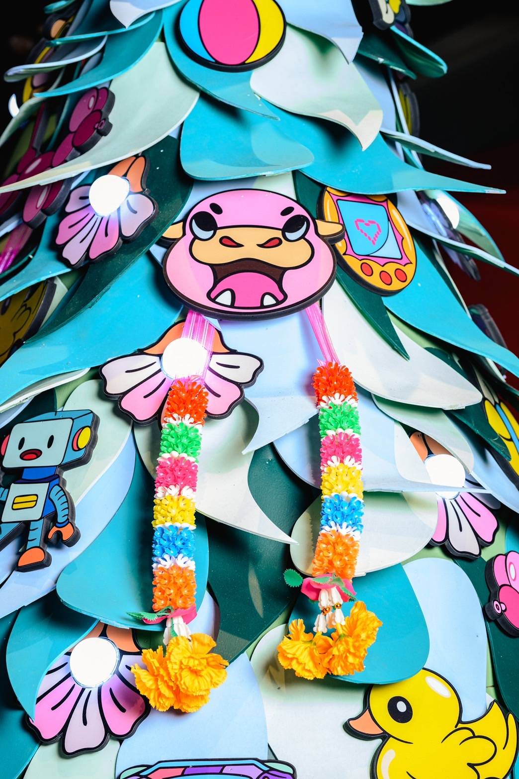 สยามเซ็นเตอร์ชวนศิลปินกราฟฟิตี้สายอีสาน Redmuuk สร้างสรรค์ผลงาน “Art of ไทย The X’Mas Tree by Redmuuk” แรงบันดาลใจจาก “ต้นไม้ผูกผ้าหลากสี” สัญลักษณ์แห่งศรัทธาในวัฒนธรรมไทย ถูกถ่ายทอดในบริบทร่วมสมัย จากลายเส้นอันเป็นเอกลักษณ์ของตัวศิลปินที่มีรากฐานจากท้องถิ่นอีสาน มีการเลือกใช้สีสันสดใส ลวดลายที่ดึงมาจากลายพื้นถิ่น และหยิบเอาวิถีชีวิตและศิลปวัฒนธรรมพื้นบ้านมาบอกเล่าให้เข้าใจง่าย ออกมาเป็นต้นคริสต์มาสในแบบไทยที่ไม่ซ้ำใคร ประดับตกแต่งด้วยคาแรกเตอร์ที่สะท้อนความเป็นไทย ไม่ว่าจะเป็น นางกวัก แมว ศาลพระภูมิ และ หุ่นม้าลาย ที่เราสามารถพบเห็นได้ทุกสถานที่ที่เป็นศูนย์รวมความเชื่อและความศรัทธา หรือแม้กระทั่งสัตว์ที่คนไทยชื่นชอบและคุ้นเคยอย่างฮิปโป นำมาตีความในแบบสนุกสนานร่วมสมัย นอกจากนี้ยังเป็นการเชื่อมความเชื่อของไทยเข้ากับสัญลักษณ์แห่งความศรัทธาและความสุขแบบตะวันตก อย่าง “ต้นคริสต์มาส – ไม้ศักดิ์สิทธิ์แห่งความปรารถนา” ก่อเกิดเป็นพื้นที่แห่งการขอพร แชร์พลังบวก และสร้างโมเมนต์สุดอาร์ทร่วมกัน “แม้ต่างความเชื่อ แต่ทุกคนต่างมีความหวังเดียวกัน”
