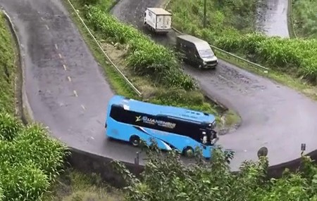 ไม่ใช่เอไอ!! รถบัสโดยสาร "ถอยหลังขึ้นเนิน" ผ่าน 5 โค้งโหด รู้เหตุผลยิ่งชื่นชมโชเฟอร์