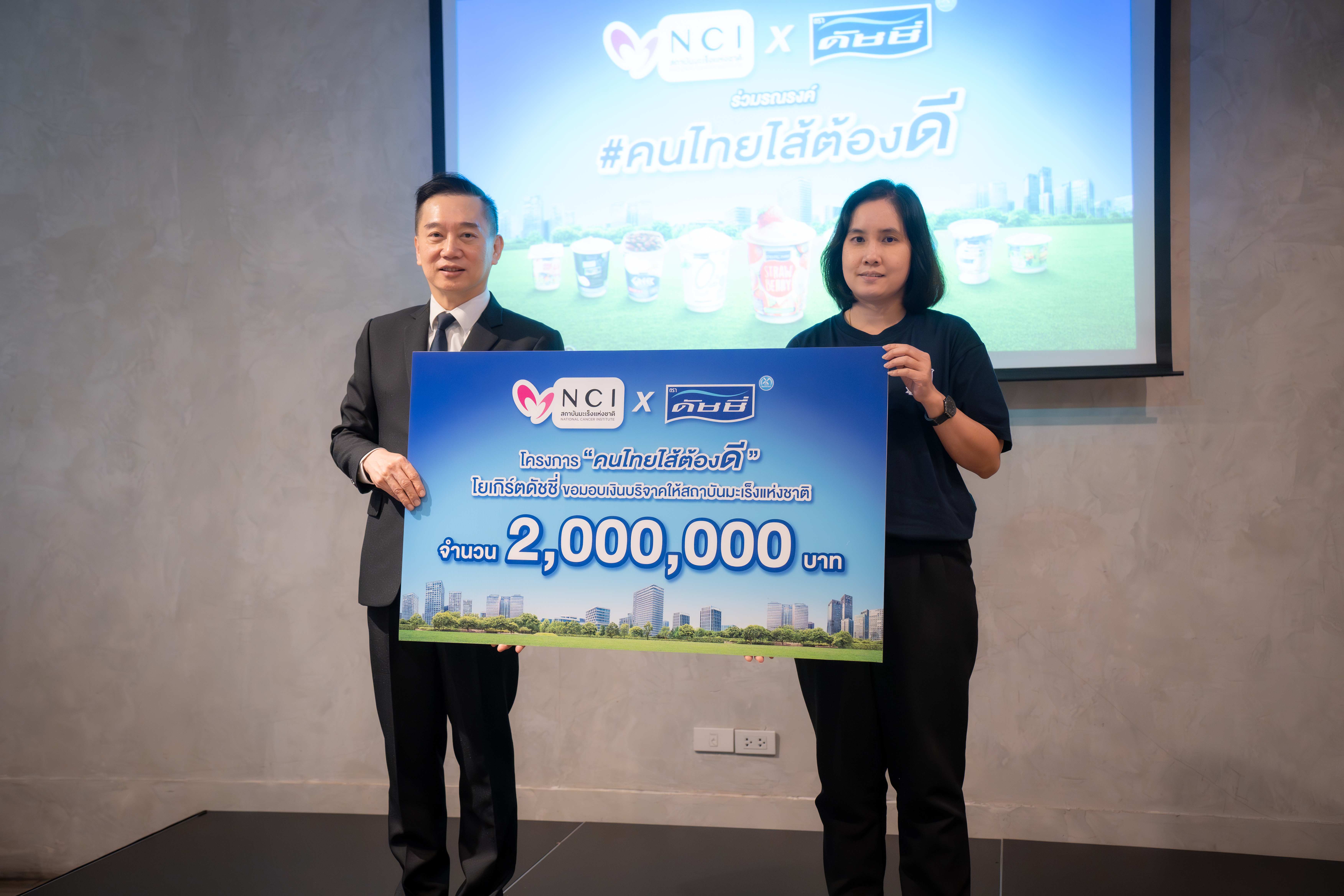 อีกหนึ่งความตั้งใจในโครงการ #คนไทยไส้ต้องดี ผลิตภัณฑ์โยเกิร์ตดัชชี่ ได้เปลี่ยนทุกการซื้อเป็นพลังแห่งการให้ ด้วยแคมเปญ "ทุกการซื้อ 1 ถ้วย เท่ากับบริจาค 10 สตางค์" ผ่านช่องทางจำหน่ายหนุ่มสาวดัชมิลล์ และดีไลท์ โดยนำรายได้ส่วนหนึ่งมอบให้กับสถาบันมะเร็งแห่งชาติ เพื่อสนับสนุนอุปกรณ์ทางการแพทย์และการรักษาผู้ป่วยโรคมะเร็งลำไส้ที่ขาดแคลนทุนทรัพย์ เป็นจำนวนเงิน 2,000,000 บาท