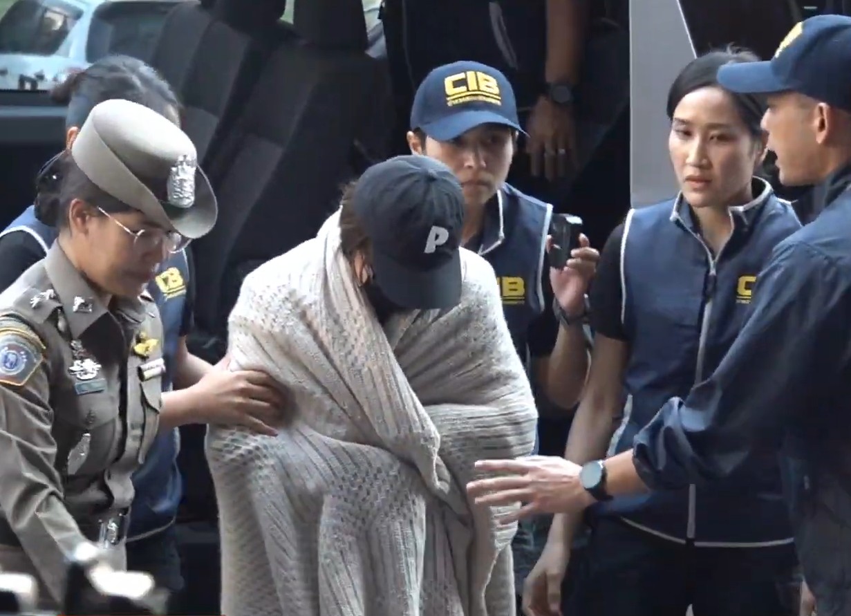 ภาพล่าสุด "นานา" ถูกกุมตัวเข้าสอบสวนกลาง ใส่หมวกเดินก้มหน้าคลุมผ้าห่มมิดชิด