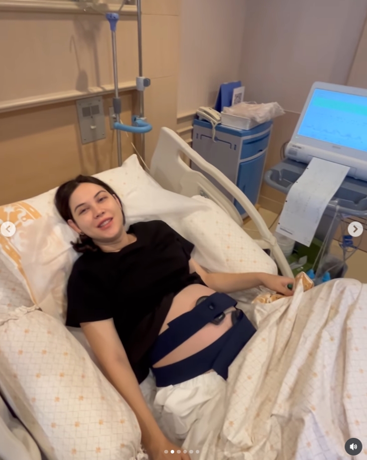 "แมท ภีรนีย์" อุ้มท้อง 38 สัปดาห์ สแตนด์บายพร้อมคลอด ลูกชายแลบลิ้นทักทาย