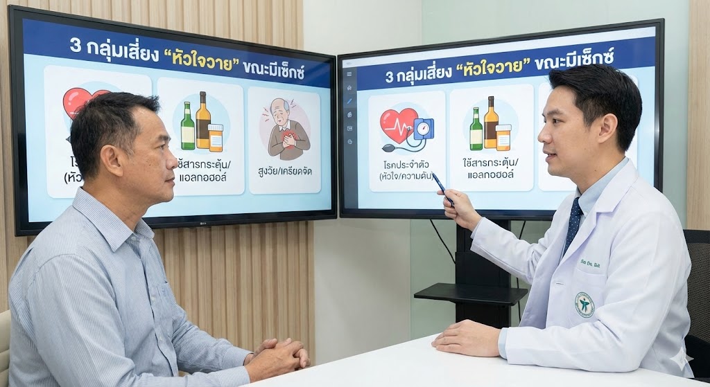 การมี "เซ็กซ์" ไม่ใช่เพียงแค่กิจกรรมสร้างความสัมพันธ์ทางกาย แต่ในทางการแพทย์ถือเป็นกิจกรรมที่ต้องใช้แรงกาย ซึ่งส่งผลให้หัวใจเต้นเร็ว ความดันโลหิตสูงขึ้น และกล้ามเนื้อหัวใจบีบตัวแรงขึ้นคล้ายกับการออกกำลังกายอย่างหนัก การเปลี่ยนแปลงทางสรีรวิทยาอย่างรวดเร็วนี้ อาจกลายเป็นความเสี่ยงสำหรับผู้ที่มีปัญหาสุขภาพซ่อนเร้น จนนำไปสู่การเสียชีวิตเฉียบพลันขณะมีเพศสัมพันธ์ได้