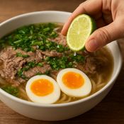 มีการแชร์ว่า การบีบมะนาวหนึ่งในสี่ลูกลงในชามเนื้อวัวและไข่ลวกสามารถ “ป้องกันโรค” หรือ “ช่วยให้สุขภาพดีจนไม่ต้องกังวลเรื่องการเจ็บป่วย” จริงหรือไม่?