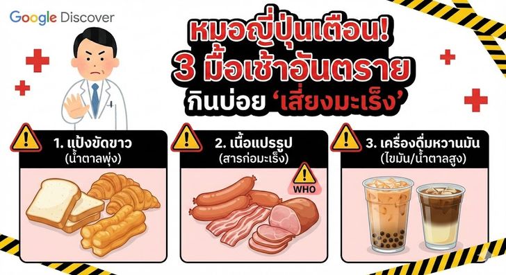 กินอยู่ไหม? หมอญี่ปุ่นเตือน 3 เมนูมื้อเช้า กินบ่อยเสี่ยง "มะเร็ง" พุ่งสูง เลี่ยงได้ต้องเลี่ยง