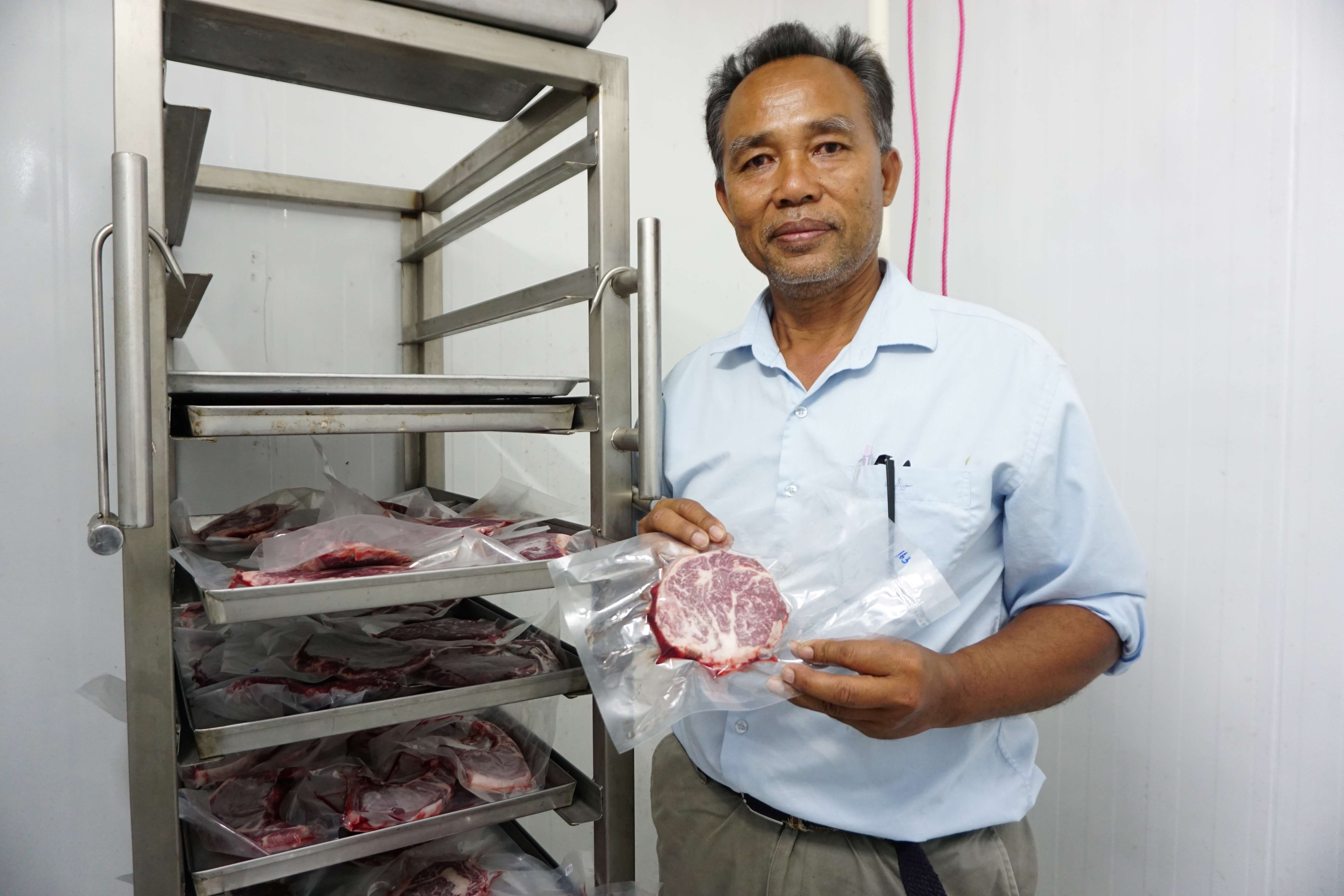 นายสว่าง สุขแสง จากห้างหุ้นส่วน ทุ่งกุลาอินเตอร์เทรด จำกัด ผู้เสนอโครงการ "โคเนื้อทุ่งกุลา เนื้อโคคุณภาพพรีเมี่ยมและผลิตภัณฑ์เนื้อโคแปรรูปมูลค่าสูง" ภายใต้แบรนด์ “KULA BEEF” เปิดเผยว่า จุดเริ่มต้นเกิดจากความต้องการแก้ปัญหาให้เกษตรกรทุ่งกุลาที่เลี้ยงโคมานานแต่ขายได้ราคาต่ำ เนื่องจากเกษตรกรขาดความรู้ด้านการตัดแต่งซากและการพัฒนามาตรฐาน ทำให้คุณภาพเนื้อไม่สม่ำเสมอ จึงขายได้ราคาเพียง 170-200 บาทต่อกิโลกรัม แต่หลังนำเทคนิคการบ่มเนื้อมาประยุกต์ใช้ เกษตรกรสามารถปรับตัวได้ดีขึ้น ราคาโคที่เกษตรกรขายได้สูงขึ้นจากเนื้อโคตามท้องตลาดทั่วไป มีราคาอยู่ที่ 450-1,200 บาทต่อกิโลกรัม และยังเกิดการสร้างงาน สร้างเครือข่ายความร่วมมือ ตั้งแต่การคัดเลือกสายพันธุ์ การจัดการสุขภาพ ไปจนถึงเทคนิคการแปรรูปหลังฆ่า โดยนวัตกรรมหลักของโครงการ KULA BEEF คือ “กระบวนการบ่มเนื้อแบบวิทยาศาสตร์” ที่ถูกออกแบบมาเพื่อเพิ่มความนุ่ม สร้างกลิ่นรสที่เป็นเอกลักษณ์ และยกระดับคุณภาพเนื้อโคให้ได้มาตรฐานสากล โดยมีการนำเทคนิคการบ่มเนื้อมาประยุกต์ใช้ เริ่มจากการเตรียมเนื้อด้วยการแช่ในเอนไซม์ Papain 0.5% ซึ่งเป็นเอนไซม์ธรรมชาติจากมะละกอดิบ เพื่อช่วยให้เส้นใยโปรตีนแตกตัว จากนั้นจะนำไปบ่มต่อในห้องควบคุมอุณหภูมิและความชื้นสัมพัทธ์ที่ 4 องศาเซลเซียส เป็นเวลา 28 วัน ช่วงเวลาและอุณหภูมิดังกล่าวเป็นค่าที่เหมาะสมที่สุด เพื่อให้เอนไซม์ทำงานเต็มที่ ทำให้เนื้อมีความนุ่ม มีกลิ่นหอมธรรมชาติ และเกิด ‘รสนวล’ ซึ่งเป็นเอกลักษณ์เฉพาะของ KULA BEEF