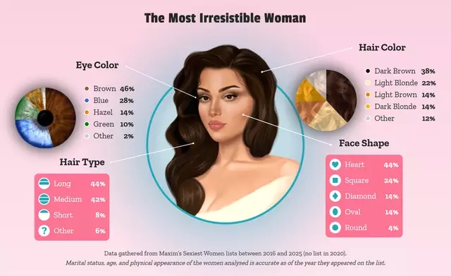 ผลการสำรวจล่าสุดได้พยายามค้นหาคำตอบว่า "ผู้หญิงที่เซ็กซี่ที่สุดที่ยังมีชีวิตอยู่" (Sexiest Woman Alive) นั้นควรมีรูปร่างหน้าตาอย่างไรตามหลักสถิติ โดยอ้างอิงข้อมูลจากการจัดอันดับของนิตยสาร Maxim ตลอด 10 ปีที่ผ่านมา (ปี 2016-2025) เพื่อสรุปออกมาเป็นมาตรฐานความงามที่คนส่วนใหญ่ลงความเห็นว่าดึงดูดใจที่สุด