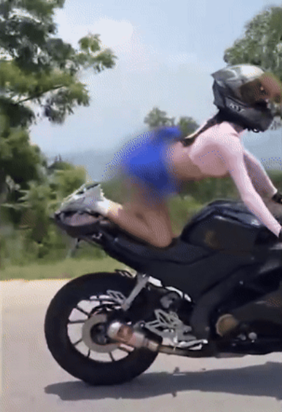 กลัวไม่ไวรัล! สาวขี่บิ๊กไบก์ "ท่ายาก" ยกบั้นท้ายโต้ลม สุดหวาดเสียว จนต้องไปพบตร.