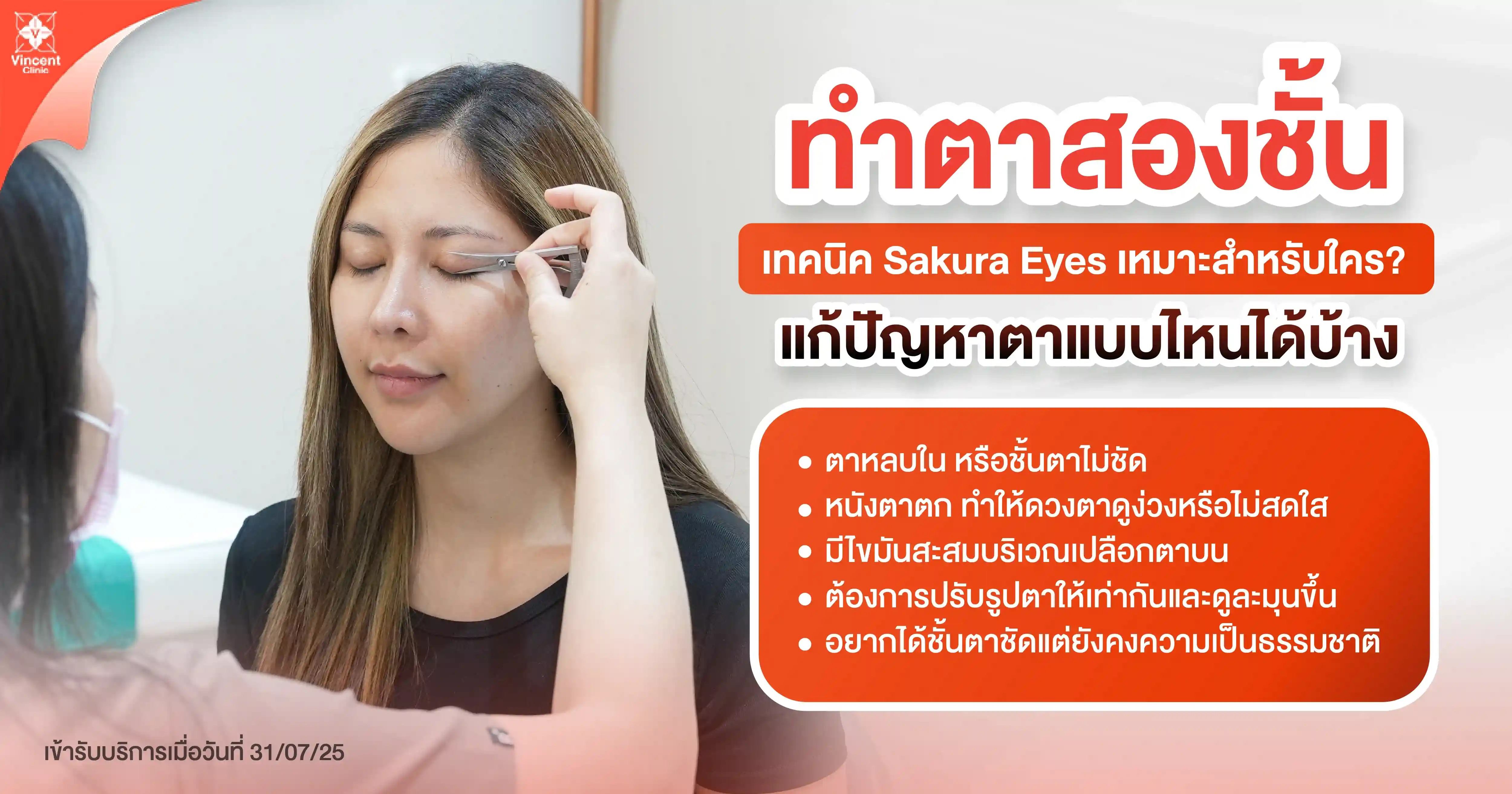 ตลาดศัลยกรรมตกแต่งใบหน้าในปัจจุบันมีส่วนแบ่งการตลาดค่อนข้างมาก โดยเฉพาะการทำตาสองชั้น ซึ่งเป็นตำแหน่งที่มีความละเอียดอ่อนและซับซ้อนในการผ่าตัด เพื่อให้ได้ผลลัพธ์ที่ดีและไม่เกิดภาวะแทรกซ้อนตามมาในระยะยาว Vincent Clinic จึงได้พัฒนาเทคนิคทำตา Sakura Eyes ซึ่งเป็นเทคนิคเฉพาะที่ช่วยปรับรูปทรงตาให้มีความเรียวสวยได้สัดส่วนรับกับใบหน้า ปรับลุคให้ดูละมุนหวาน แลดูอ่อนเยาว์ ทั้งยังช่วยลดอาการบวมช้ำให้น้อยลง ใช้เวลาพักฟื้นน้อย ร่างกายฟื้นตัวได้ไวขึ้น ตอบโจทย์ความต้องการของกลุ่มเป้าหมายในตลาดศัลยกรรมตาสองชั้นที่ต้องการความเป็นธรรมชาติ ลดผลข้างเคียงหลังผ่าตัดให้น้อยลง