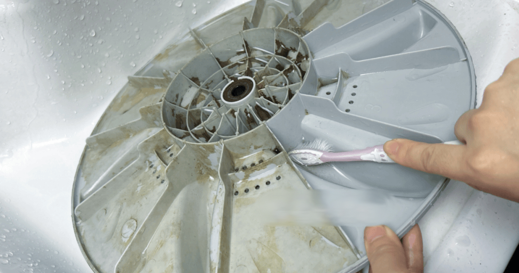 หลายคนไม่เคยรู้เลยว่า ใต้จานหมุนใบพัดที่ก้นถังซักนั้น คือแหล่งสะสมของ "ตะกอนดินและคราบไขมัน" ชั้นดี! ภายใต้ฝาครอบพลาสติกเล็กๆ ตรงกลาง อาจมีโคลนตม น้ำเสีย และคราบผงซักฟอกตกค้างสะสมมานานหลายปี เป็นสาเหตุหลักของกลิ่นเหม็นอับและคราบเหลืองบนเสื้อผ้า