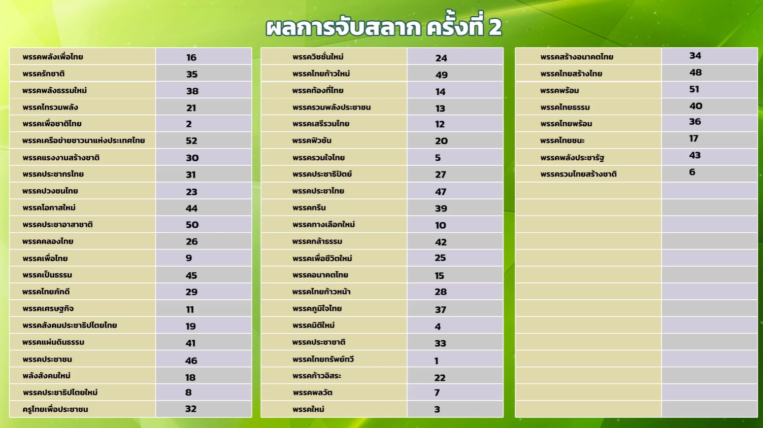 เลือกตั้ง 2569: เปิดหมายเลขพรรคการเมือง ครบ 52 พรรค พรรคไหนได้เบอร์อะไร?