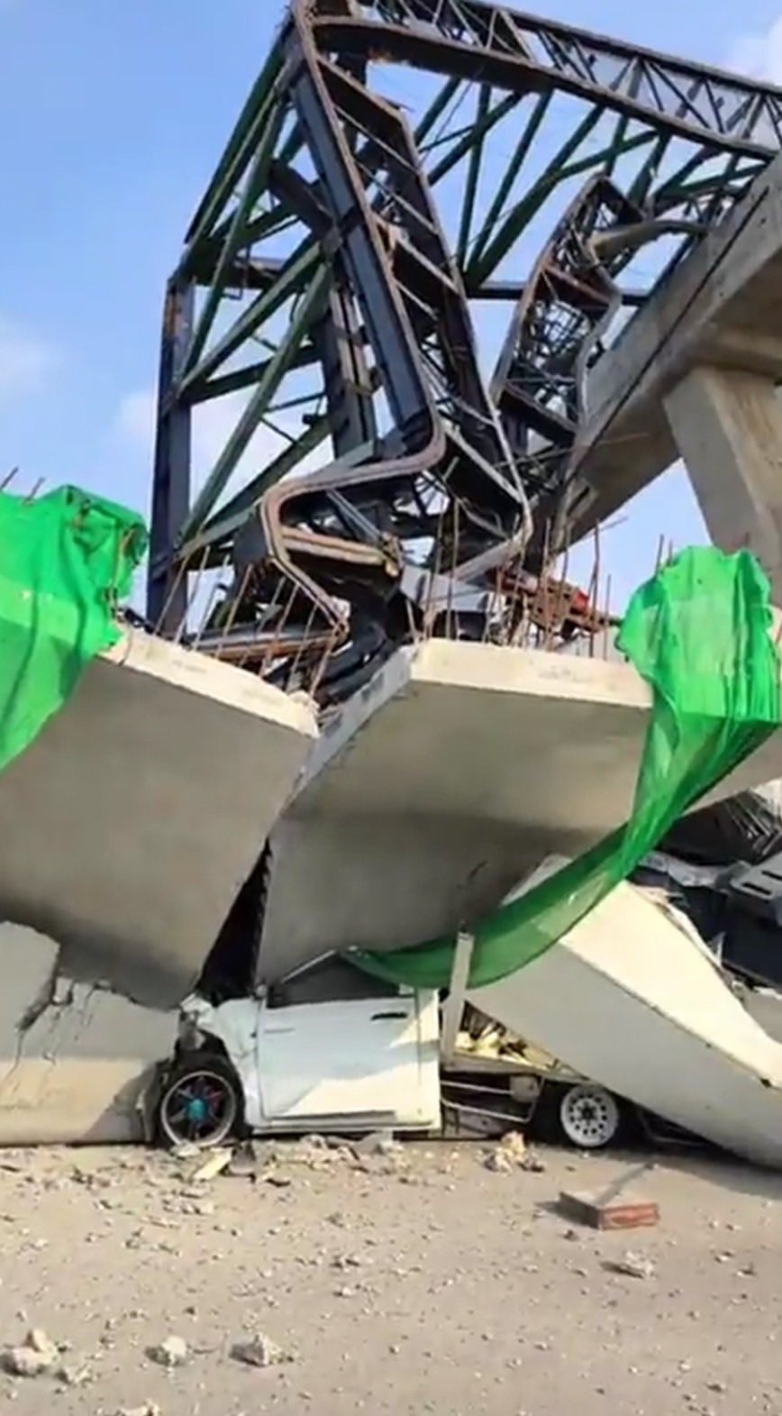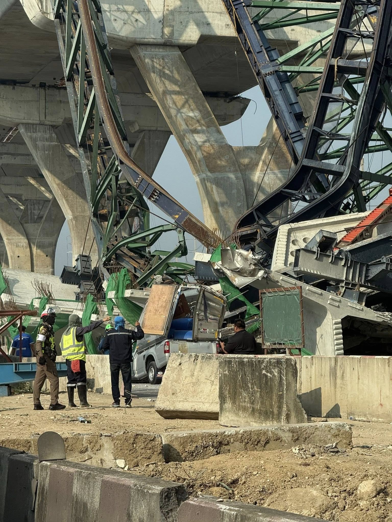 ระทึกพระราม 2 เครนก่อสร้างถล่มทับรถ ก่อนขึ้นสะพานข้ามแม่น้ำท่าจีน พบผู้เสียชีวิตแล้ว 2 ราย