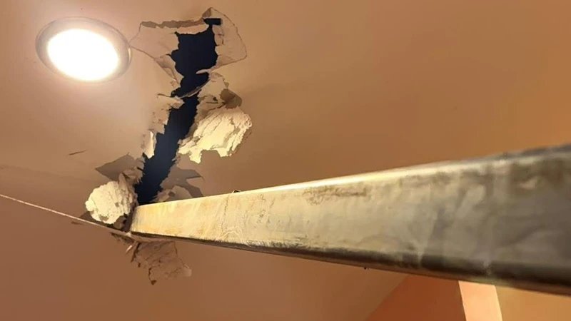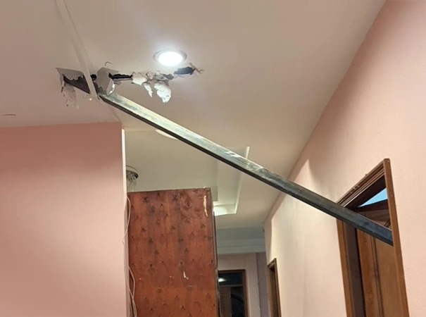 เครนอีก!! เหล็กเส้นใหญ่ยาวร่วงจากเครน ทะลุหลังคาบ้าน ชาวบ้านผวา มีทั้งเด็ก-ผู้ป่วยติดเตียง