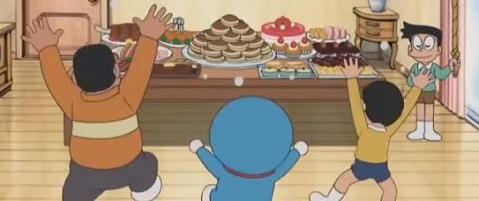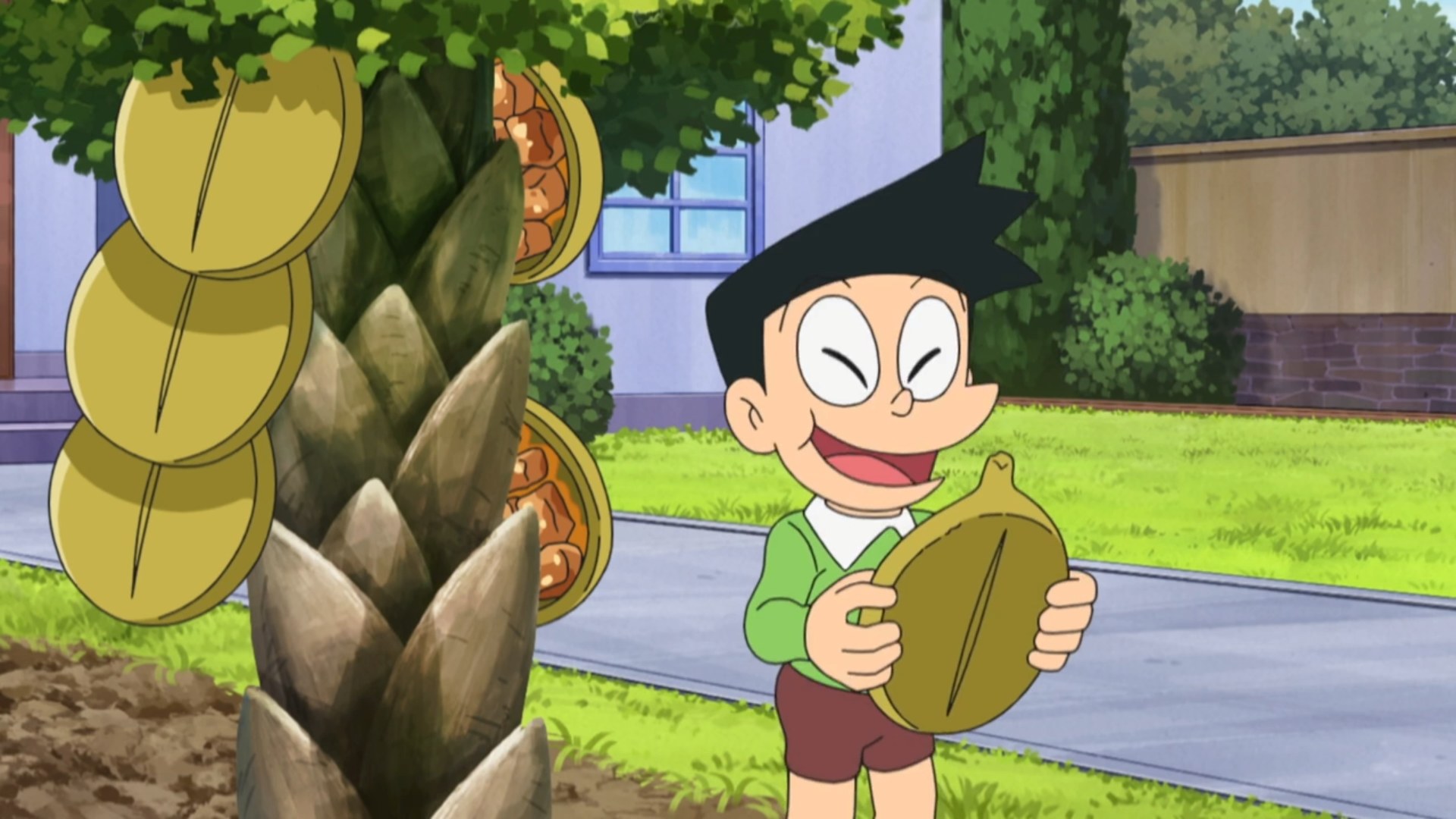 มีอยู่ตอนหนึ่งที่โดราเอมอนใช้ของวิเศษ "ตู้ติ๊ต่าง" (สมมติว่า...) สร้างโลกสมมติที่ทรัพย์สินทั้งหมดของบ้านซูเนโอะหายวับไปกับตา จากคฤหาสน์หลังโต เหลือเพียงถ้ำรูหนู จากรถหรู เหลือเพียงการเดินเท้า