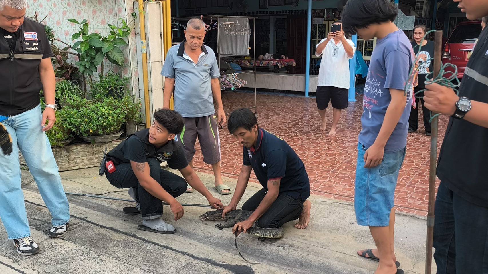 ศูนย์วิทยุชาลีได้รับแจ้งเหตุขอความช่วยเหลือจาก นางบุษบา อายุ 57 ปี เจ้าของบ้านเลขที่ 45/24 ว่ามีสัตว์เลื้อยคลานขนาดใหญ่บุกเข้ามาในตัวบ้าน เจ้าหน้าที่กู้ภัยฐานวัดกู้จึงรีบนำอุปกรณ์เข้าตรวจสอบทันที