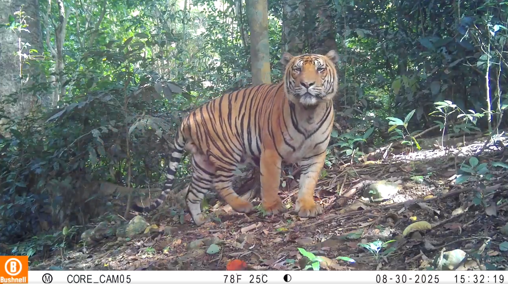 ไฮไลต์สำคัญของการลาดตระเวนครั้งนี้คือการตรวจสอบภาพจากกล้อง Camera trap ที่ติดตั้งไว้ตั้งแต่กลางปี 2568 โดยปรากฏภาพของ เสือโคร่งตัวผู้รหัส KKT02M หรือที่เจ้าหน้าที่ตั้งชื่อว่า “ณเดช” ซึ่งเป็นเสือโคร่งเจ้าถิ่นที่ยังคงใช้พื้นที่บริเวณแม่น้ำเพชรบุรีเป็นแหล่งหากินหลัก