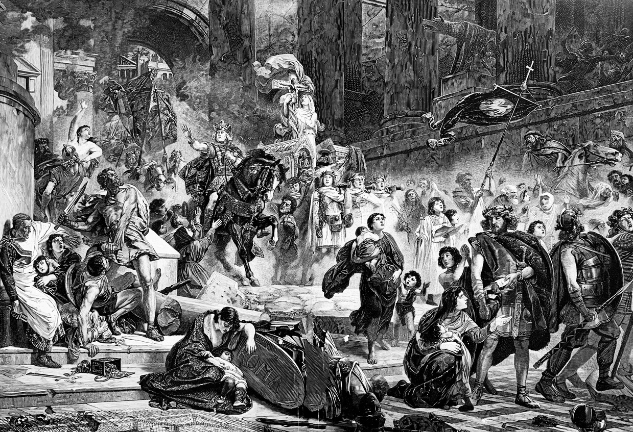 ย้อนกลับไปในศตวรรษที่ 5 ซึ่งถือเป็นช่วงเวลาวิกฤตของอาณาจักรโรมัน เมื่อชนเผ่าเยอรมานิกนามว่า วิซิกอธ (Visigoths) ภายใต้การนำของ พระเจ้าอลาริกที่ 1 (Alaric I) ได้นำกองทัพเข้าปิดล้อมกรุงโรม ซึ่งถือเป็นการเผชิญหน้ากับศัตรูครั้งใหญ่ที่สุดในรอบ 700 ปี