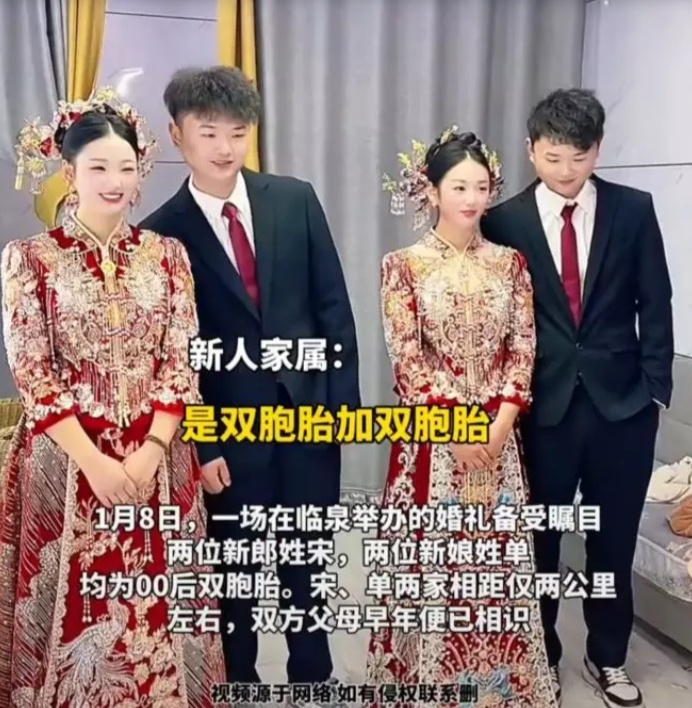 ไวรัลงานแต่งที่จีน คู่ฝาแฝดชายแต่งงานกับคู่ฝาแฝดหญิง และทั้งสองฝ่ายยังมีลุงที่เป็นฝาแฝดกัน