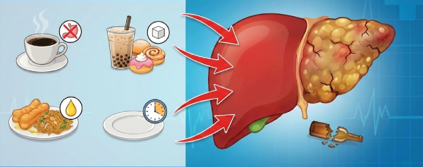 คุณหมอยกเคสผู้ป่วยชายวัย 40 ปี ที่แทบไม่แตะแอลกอฮอล์และออกกำลังกายสม่ำเสมอ แต่กลับตรวจพบภาวะ "ไขมันพอกตับรุนแรง" หลังจากมีอาการปวดท้อง สาเหตุสืบเนื่องมาจากเขามีพฤติกรรมชอบทานมื้อเช้าด้วย "ของทอด" (เช่น ปาท่องโก๋) คู่กับ "กาแฟใส่น้ำตาลเยอะๆ" เพื่อให้ตื่นตัวทุกเช้า