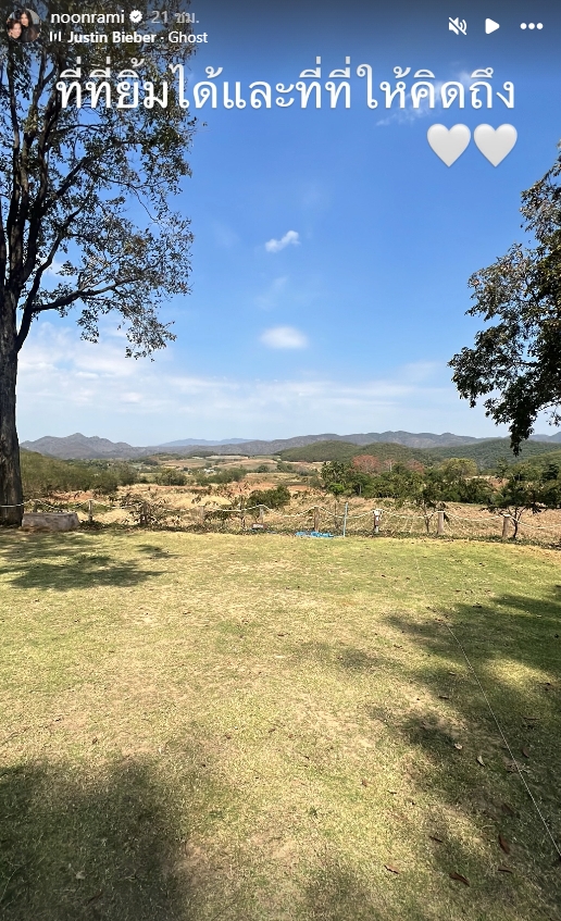 สิ่งที่ทำให้แฟนคลับใจชื้นและยิ้มตามได้ นั่นคือภาพบรรยากาศสวยๆ ที่เธอโพสต์ลงอินสตาแกรม โดยระบุแคปชั่นที่มีความหมายลึกซึ้งกินใจว่า "ที่นี่ยิ้มได้และที่ที่ให้คิดถึง"