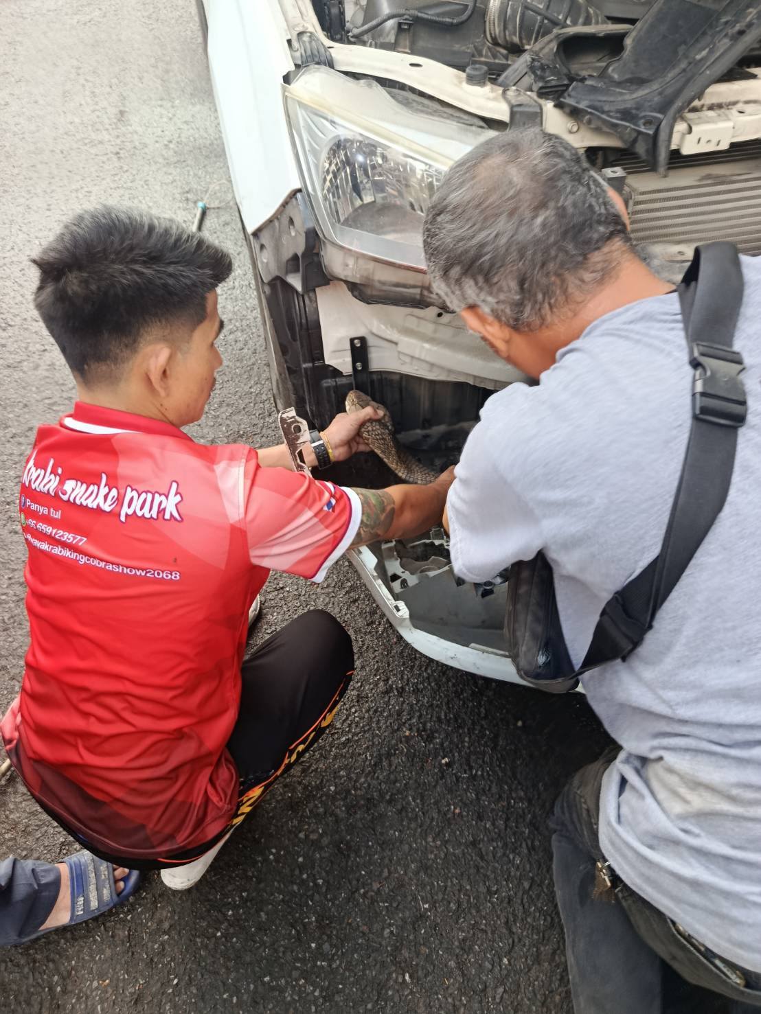 เจ้าหน้าที่งานป้องกันและบรรเทาสาธารณภัย เทศบาลเมืองพังงา ได้รับแจ้งเหตุเมื่อเวลา 13.30 น. ว่ามีงูขนาดใหญ่เข้าไปในรถของประชาชน บริเวณโรงเรียนภูงา จึงรีบนำกำลังเจ้าหน้าที่พร้อมอุปกรณ์จับงูรุดไปยังที่เกิดเหตุ