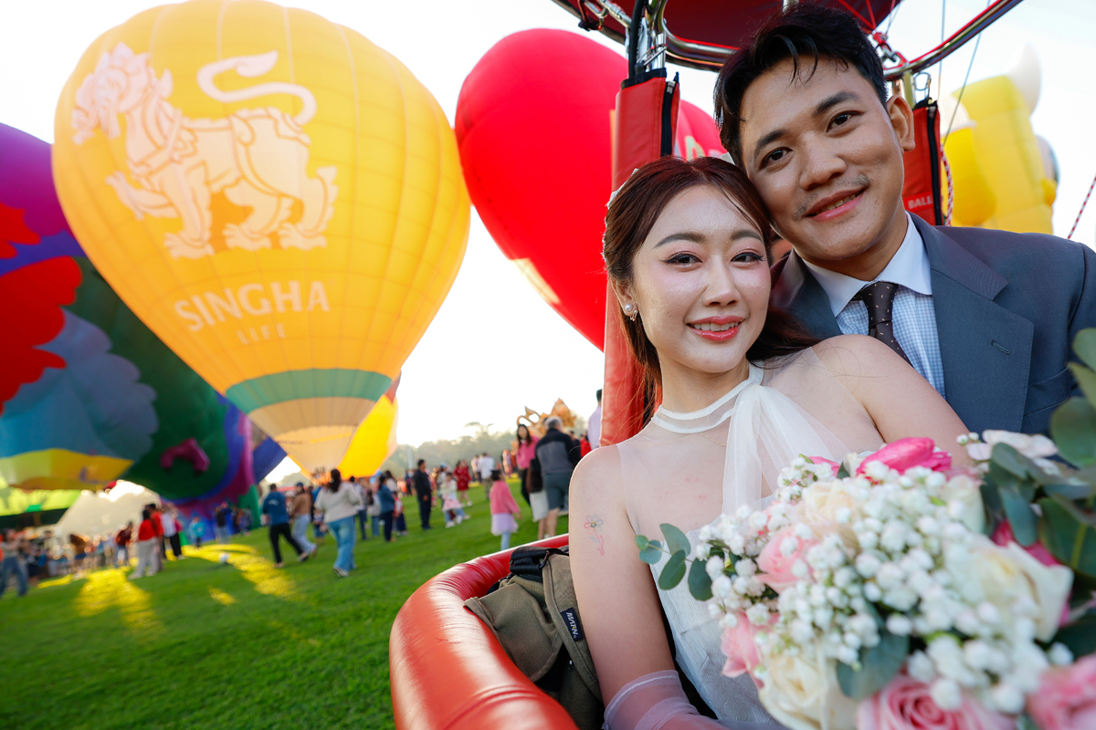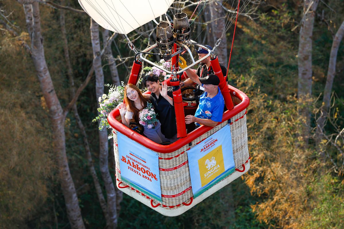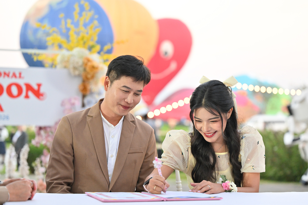 14 คู่รักฉลองวันวาเลนไทน์สุดโรแมนติก กับกิจกรรม “บอลลูนเลิฟ จดทะเบียนสมรส บอกรักบนฟ้า”หนึ่งในกิจกรรมไฮไลต์ของงาน Singha Park International Balloon Fiesta 2026 เทศกาลบอลลูนนานาชาติที่ยิ่งใหญ่ที่สุดในอาเซียน ซึ่งจัดต่อเนื่องเป็นปีที่ 10