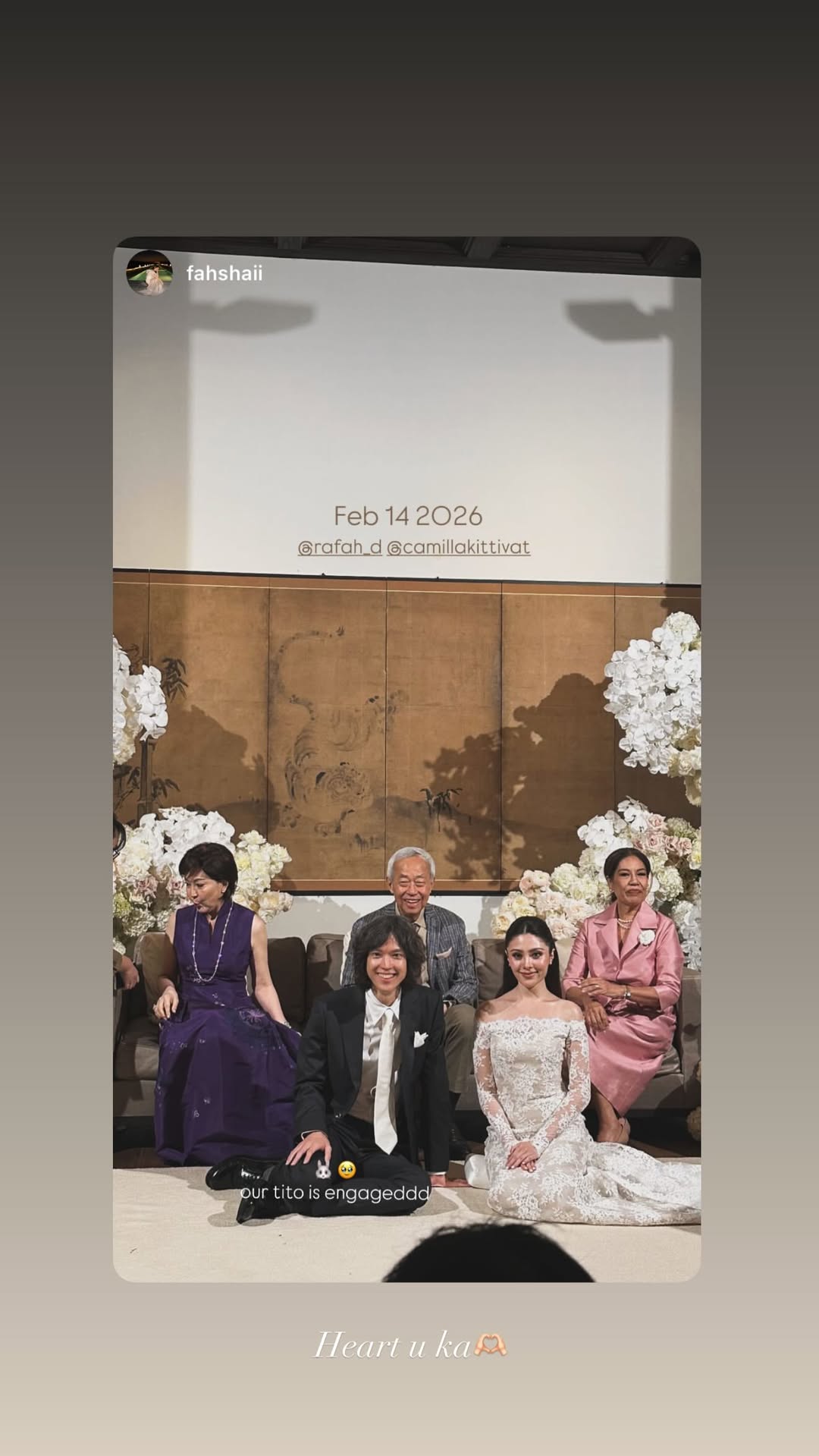 "ระฟ้า ดำรงชัยธรรม" ทายาทแกรมมี่ เข้าพิธีแต่งงานกับ "มิลลี่ คามิล่า" วิวาห์หวานหมื่นล้าน"ระฟ้า ดำรงชัยธรรม" ทายาทแกรมมี่ จับมือ "มิลลี่" เข้าพิธีมงคลสมรสตามแบบประเพณีไทย วิวาห์หวานรับวาเลนไทน์!
