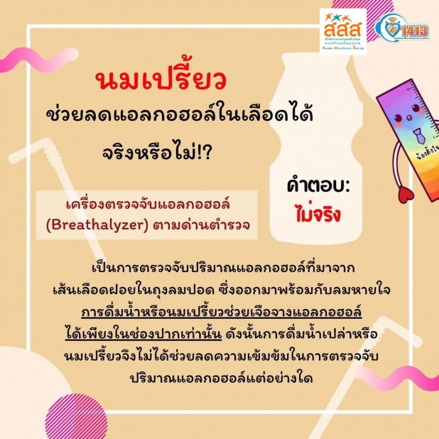 "ดื่มนมเปรี้ยว" ก่อน "เจอด่าน" ช่วยให้เป่าแอลกอฮอล์ไม่ขึ้นจริงหรอ? : เช็กข่าวชัวร์