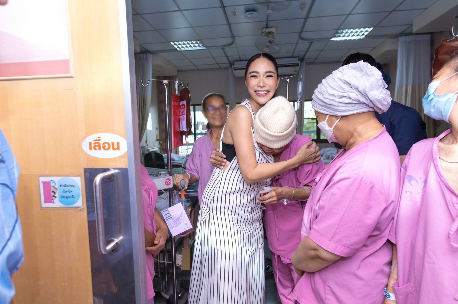 พลอย ใช้เวลาพูดคุย โอบกอด และให้กำลังใจผู้ป่วยอย่างใกล้ชิด ผู้ป่วยหลายท่านถึงกับเอ่ยว่า “วันนี้มีแรงทานข้าวแล้ว” สร้างความปลาบปลื้มใจกับทุกฝ่ายเป็นอย่างมาก