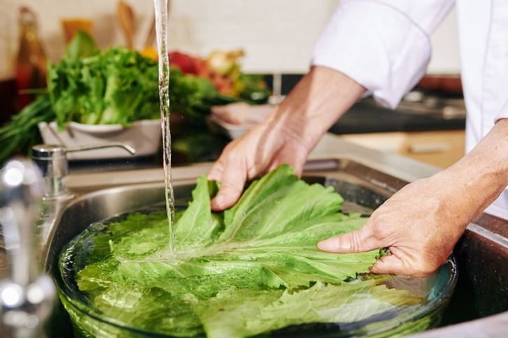 สำหรับผักใบเขียว ควรแยกใบออกทีละใบ และล้างบริเวณโคนให้สะอาด ส่วนบรอกโคลีหรือถั่ว สามารถใช้แปรงขนนุ่มช่วยทำความสะอาดได้