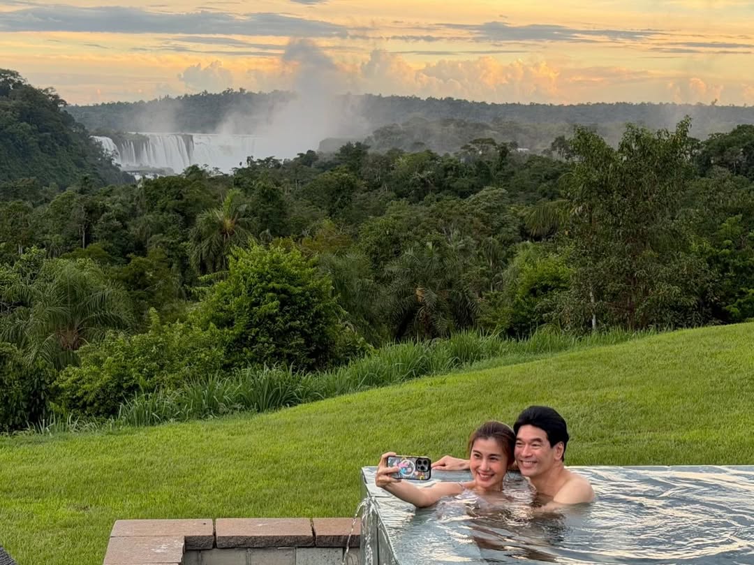 แต่ที่ทำเอาฮือฮาคือโมเมนต์ล่าสุดที่ จ๊ะจ๋า ควงคุณสามีลงเล่นน้ำในสระ ซึ่งวิวเบื้องหลังนั้นสวยอลังการตระการตามาก เพราะเป็นภาพของ "น้ำตกอิกัวซู" หนึ่งในน้ำตกที่ยิ่งใหญ่ที่สุดในโลก แต่งานนี้บอกเลยว่าแฟนคลับหลายคนถึงกับ "หลุดโฟกัส" จากวิวธรรมชาติอันยิ่งใหญ่ เพราะออร่าความสวยของ จ๊ะจ๋า และความสวีทของทั้งคู่นั้นดึงดูดสายตาแย่งซีนไปแบบเต็มๆ