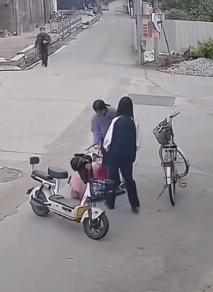 หลังจากนั้น นักเรียนหญิง 2 คน ซึ่งเดินผ่านมาเห็นเหตุการณ์ ได้รีบเข้าไปช่วยเหลือทันที โดยหนึ่งในนั้นช่วยพยุงตัวหญิงที่ล้มลง ส่วนอีกคนช่วยยกจักรยานขึ้น ก่อนช่วยให้เธอลุกขึ้นยืนได้สำเร็จ โดยทั้งหมดเป็นไปด้วยความตั้งใจช่วยเหลือ ไม่ได้มีพฤติกรรมทำให้เกิดอุบัติเหตุ