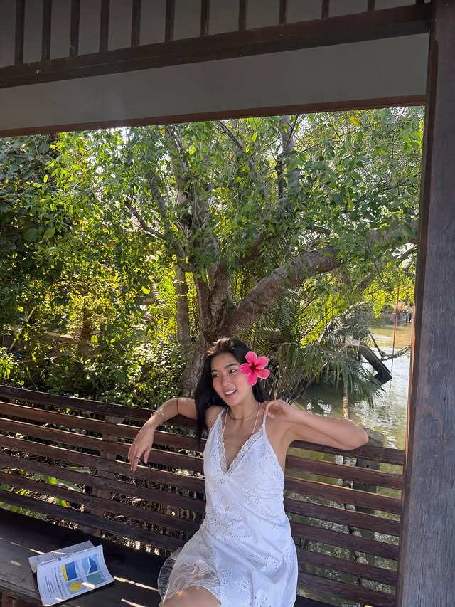 "ก้อย อรัชพร" ชุดเดรสขาวสดใสอยู่ที่บ้านริมน้ำ พร้อมวาดรูป คนทักฝีมือเหมือน "ทิม พิธา"