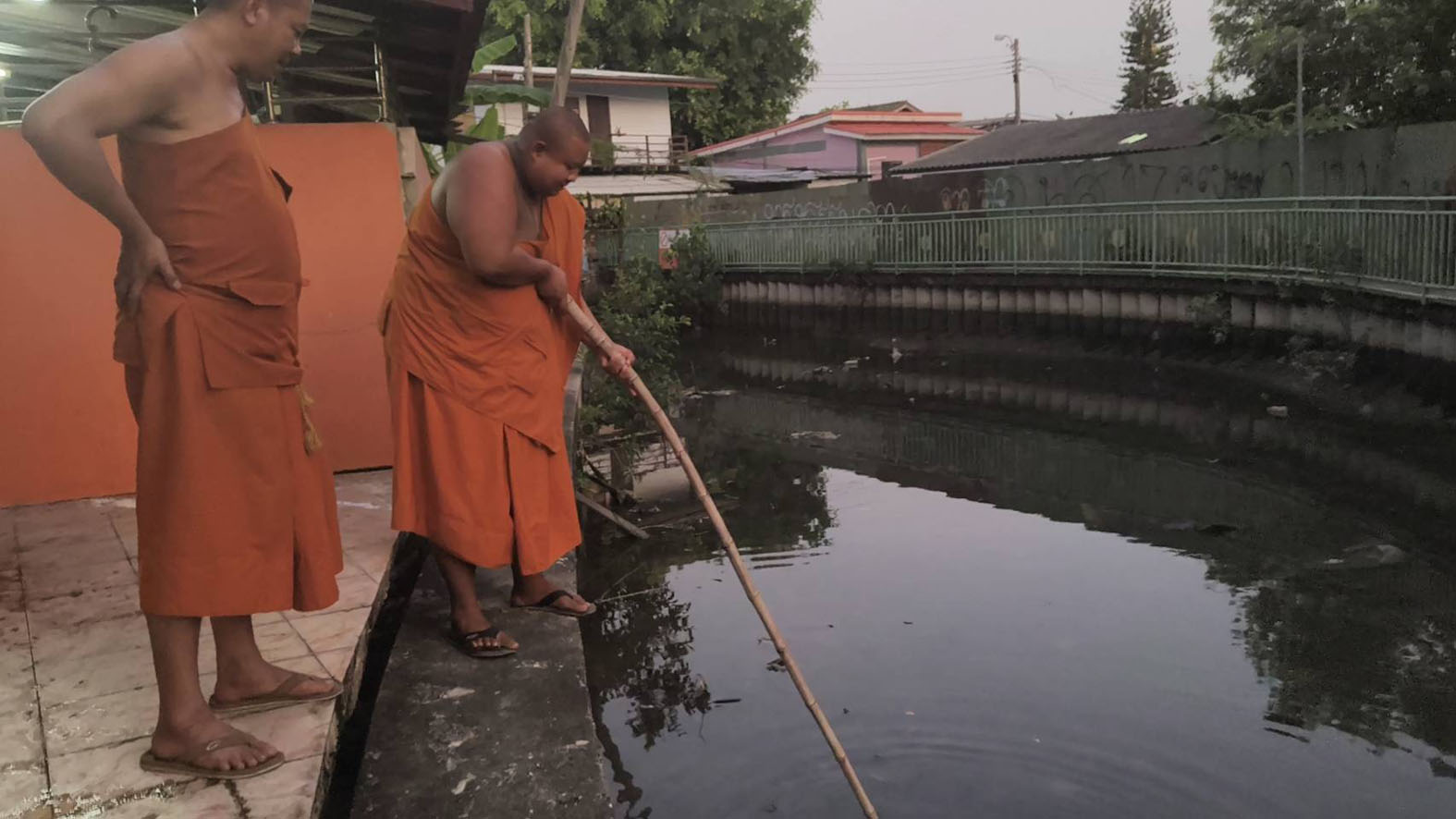 ผงะทั้งวัด! พระล้างจานหลังกุฏิ เจอ "จระเข้" โผล่คลอง สุดท้ายคดีพลิก (มีคลิป)