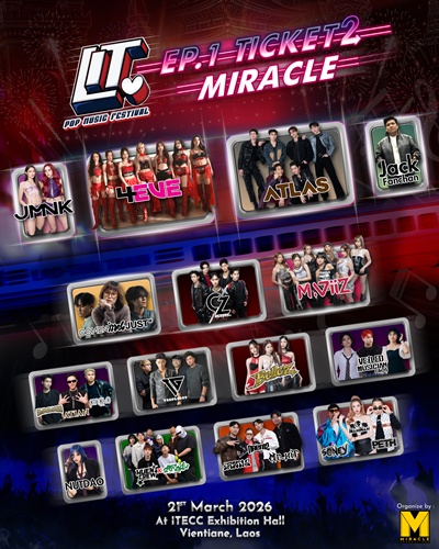 นครหลวงเวียงจันทน์กำลังจะกลายเป็นศูนย์กลางของดนตรีป๊อปแห่งเอเชียตะวันออกเฉียงใต้ กับเทศกาลดนตรีครั้งสำคัญ “L.I.T POP MUSIC FESTIVAL EPISODE 1 : TICKET 2 MIRACLE” ที่เตรียมรวมศิลปิน L-POP และ T-POP มากกว่า 20 แอคต์ มาสร้างประสบการณ์เฟสติวัลครั้งใหญ่ให้กับแฟนเพลงจากลาว ไทย และประเทศเพื่อนบ้าน
