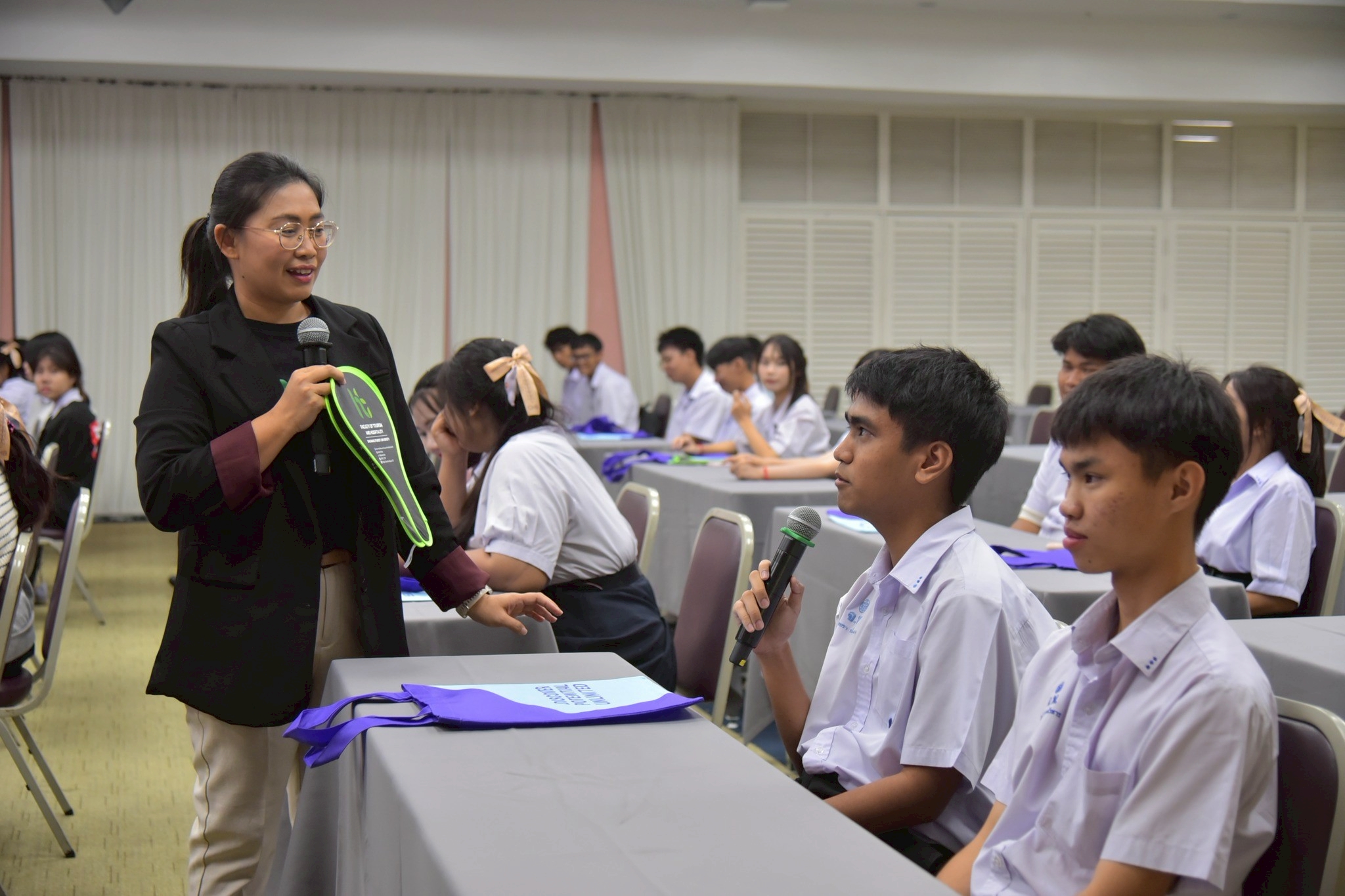 อาจารย์พรทิพย์ บุญเที่ยงธรรม หัวหน้าโครงการ กล่าวว่า “ปัจจุบันโลกการทำงานต้องการบุคลากรที่มีความสามารถด้านภาษาและเข้าใจวัฒนธรรมที่หลากหลาย อุตสาหกรรมการท่องเที่ยว การจัดอีเวนต์ การบริการโรงแรม และธุรกิจบริการที่เกี่ยวข้อง จึงเป็นหนึ่งในเส้นทางอาชีพที่เปิดโอกาสให้ผู้ที่เรียนสายภาษาได้ใช้ศักยภาพของตนเองอย่างเต็มที่ กิจกรรมครั้งนี้สอดคล้องกับแนวทางของมหาวิทยาลัยที่มุ่งปลุกพลัง–สนับสนุน–ส่งเสริมศักยภาพของผู้เรียน ให้เห็นเส้นทางอาชีพในอนาคต และเตรียมความพร้อมสู่การเรียนต่อในระดับอุดมศึกษาอย่างมีเป้าหมาย”