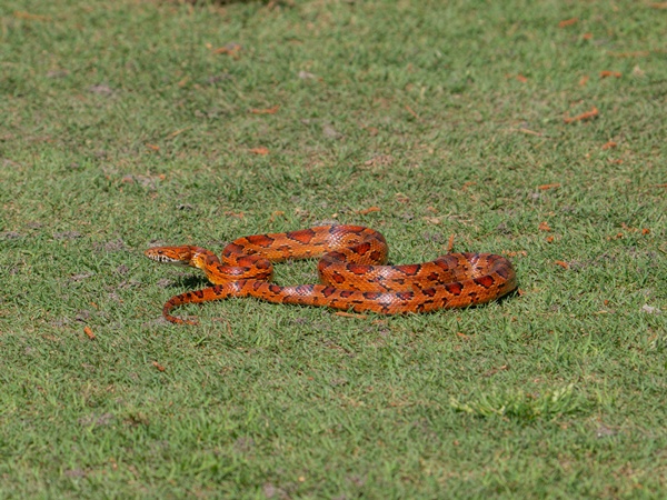 งูคอร์นสเนค หรือที่รู้จักในชื่อ "งูแมวเซาแดง" (Red Rat Snake) มีถิ่นกำเนิดในแถบตะวันออกของสหรัฐอเมริกา ในธรรมชาติพวกมันมักจะมีลำตัวสีส้มหรือน้ำตาลแดง พร้อมลวดลายสีขาวดำที่โดดเด่นบริเวณส่วนหลัง พวกมันเป็นนักปีนป่ายที่เก่งกาจและมักซ่อนตัวตามโพรงหนูหรือใต้เปลือกไม้เพื่อดักซุ่มล่าสัตว์ฟันแทะ