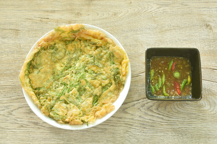 - ไข่เจียวชะอมและน้ำพริกกะปิ: ชะอมถือเป็นยอดผักที่มีพิวรีนสูงมาก ขณะที่ในน้ำพริกกะปิยังมี "มะเขือพวง" ซึ่งมีพิวรีนสูงเช่นกัน นอกจากนี้กะปิและกุ้งแห้งที่เป็นอาหารทะเล ยังเป็นตัวกระตุ้นให้ผู้ที่มีอาการของโรคเกาต์อยู่แล้วมีอาการปวดรุนแรงขึ้น