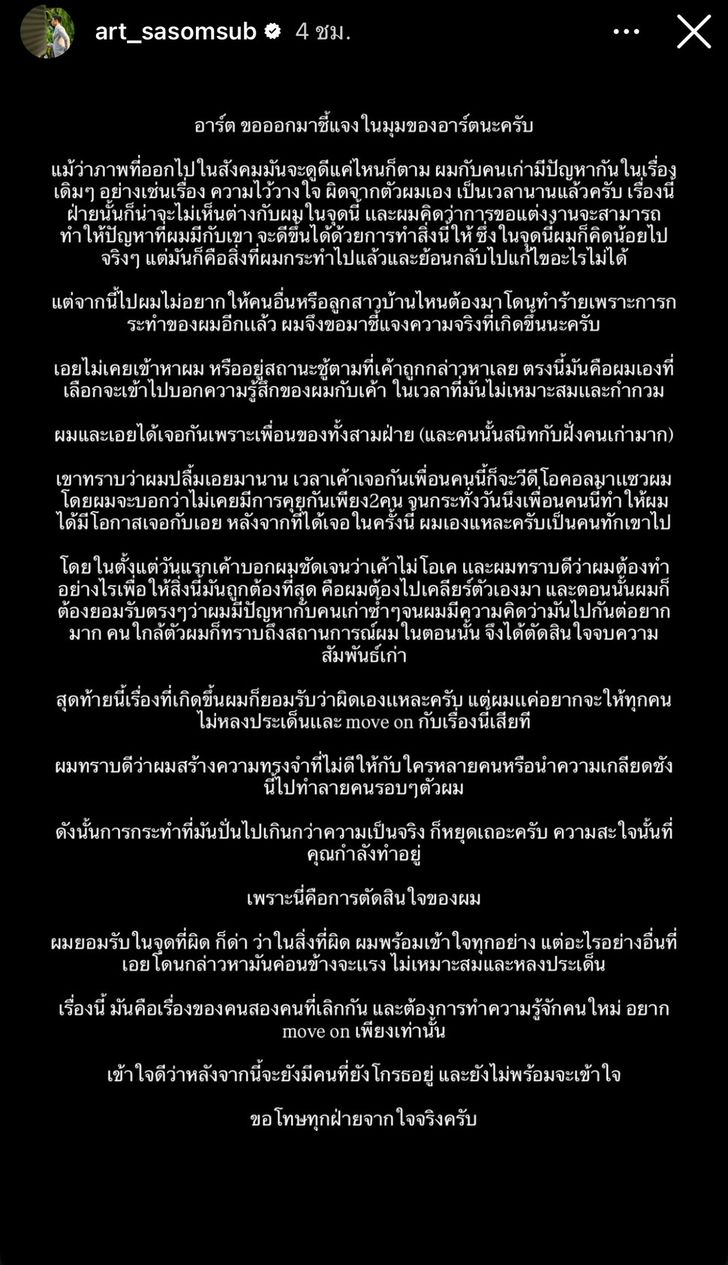 "อาร์ต ขอออกมาชี้แจงในมุมของอาร์ตนะครับ