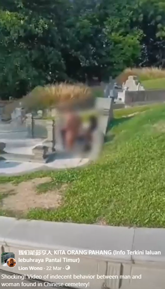 เว็บไซต์ข่าวต่างประเทศ World of Buzz รายงานเหตุการณ์สุดอื้อฉาวที่กำลังเป็นกระแสไวรัลในประเทศมาเลเซีย เมื่อเพจเฟซบุ๊กท้องถิ่นได้เผยแพร่คลิปวิดีโอของคู่รักชายหญิงคู่หนึ่ง ที่ถูกจับได้ว่ากำลังทำอนาจารกันบริเวณหน้าหลุมศพในสุสานจีน ท่ามกลางช่วงเวลาที่ประชาชนเดินทางมาเคารพบรรพบุรุษ