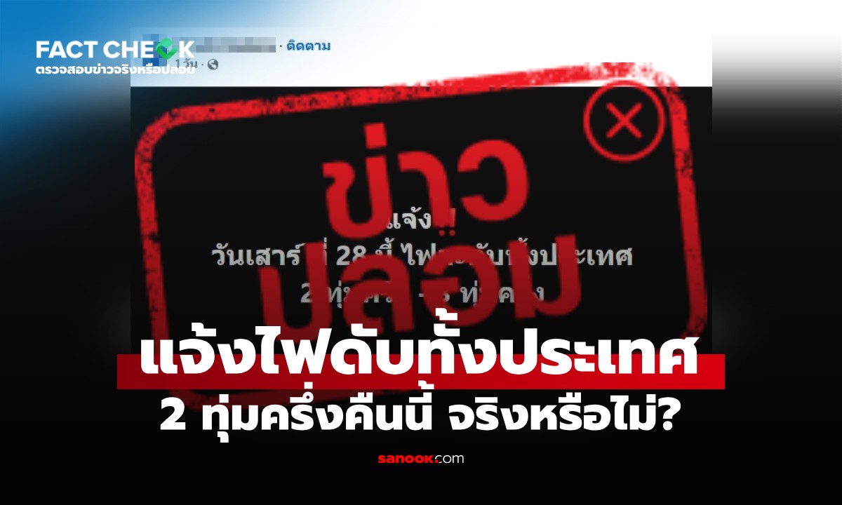 เช็กให้ชัด ข่าว “2 ทุ่มครึ่งไฟดับทั้งประเทศ” วันที่ 28 มีนาคม 2569 จริงหรือไม่?