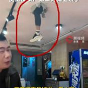 ช็อกกลางร้าน! กำลังกินอยู่ดี ๆ “ขาคน” โผล่ทะลุเพดาน ทำลูกค้าผวาทั้งร้าน